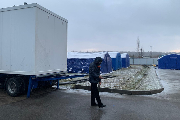 На базе хостела развернули палаточный госпиталь. Людей с подтвержденным коронавирусом изолировали