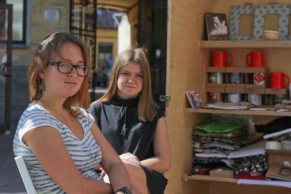 Виктория: За эти два дня нашими покупателями стали в основном те, кто уже занимается благотворительностью. Просто люди с улицы — нечастые гости, возможно, это изменится, ведь проект продлится до октября. На наших полках сувенирная продукция от трех благотворительных фондов: «Ночлежка» — помощь бездомным в Петербурге, «Антон тут рядом» — помощь людям с аутизмом и AdVita — оказание помощи людям в борьбе с раком. Все вырученные средства идут в эти три фонда. Посетители могут либо купить сувениры, либо просто пожертвовать деньги.