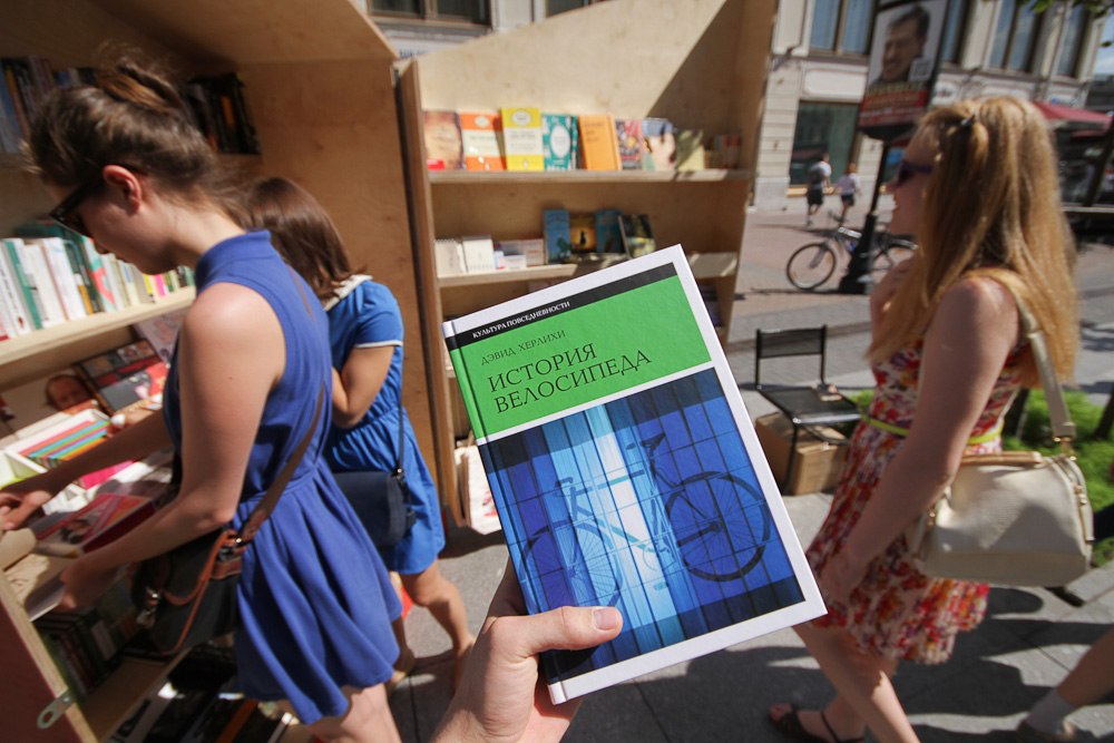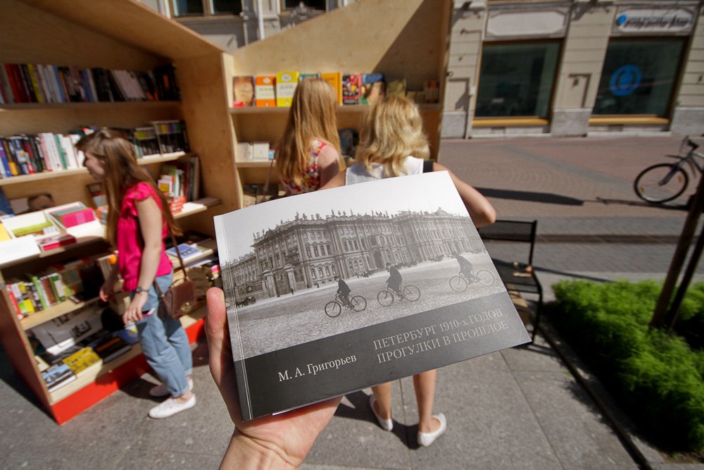 — Первым я продал Маяковского «Про это», да-да, все тем же интересуется народ. Если бы я был покупателем, а не продавцом, то выбрал бы другие книги. Например, книгу Григорьева «Прогулки в прошлое» с фотографиями Петербурга 1910-х годов. Ее, кстати, тоже уже купили, последний экземпляр остался. Еще я бы купил фотоальбом с Бродским — «Фотолетопись», причем вторую часть с фотографиями с 1972 по 1984 год. Поскольку сейчас лето, можно почитать «Историю велосипеда» из серии «Культура повседневности». Сейчас это актуально, многие на велосипед пересаживаются.