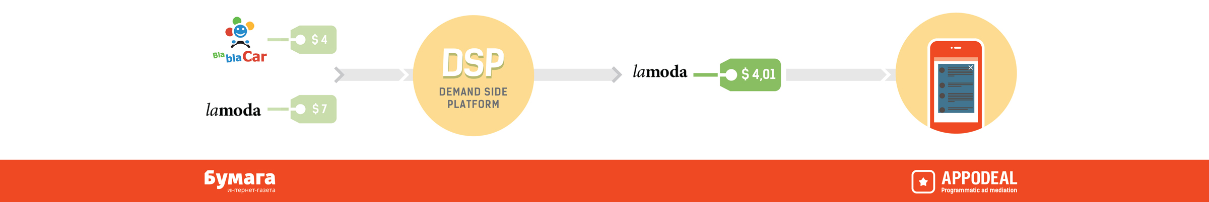 Во-вторых, если на внимание одного и того же пользователя претендуют разные рекламодатели, как разработчику решить, чью именно рекламу ставить? Можно выбрать того, кто готов больше заплатить, но раз каждого пользователя учитываем отдельно, не выяснять же это для каждого показа баннера? А вот и выяснять. Разумеется, вручную никто этим заниматься не станет, но с помощью технологии RTB (real-time bidding) всё можно делать автоматически.