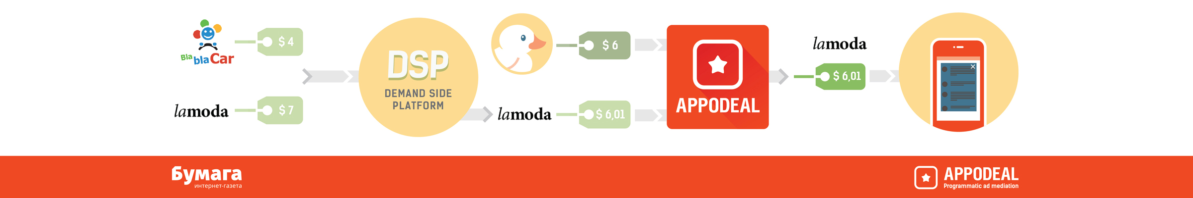 Для рекламодателя ничего не меняется: он платит те же деньги. Современный рекламный рынок устроен таким образом, что по пути от рекламодателя до конечного разработчика теряется около 60 % рекламного бюджета. Эта часть оседает у различного рода посредников — рекламных агентств, trading desks, рекламных сетей, бирж и других сервисов, — обеспечивающих инфраструктуру всех этих посредников. Appodeal фактически делает рынок более эффективным, избавляя его от миллионов ненужных посредников, которые не несут в себе никакой ценности.