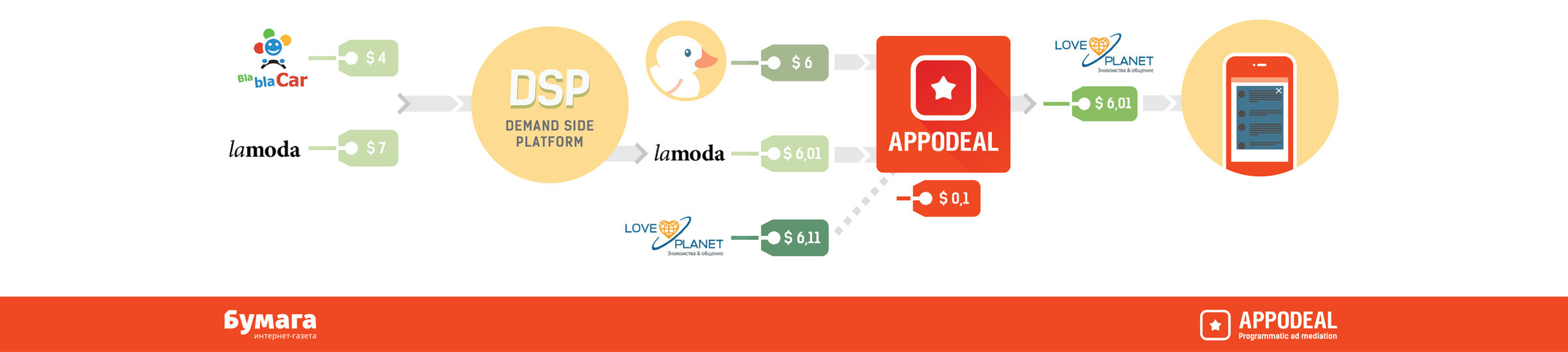 Представьте себе, что перед тем, как идти на рынок, вы обработали весь свой урожай, чтобы он был чистеньким и привлекательным. После этого не просто поговорили с каждым продавцом, а поторговались с ним, описывая преимущества вашей продукции и убеждая каждого продавца в том, что ваш товар — вообще самый лучший и разойдется на ура. Поторговавшись с каждым продавцом и получив максимальные предложения, вы еще несколько раз обошли всех продавцов, которые были заинтересованы вашим товаром, но предложили не самую высокую цену и дали им возможность поднять свою цену, так как в противном случае товар уйдет другому реализатору. Чтобы совсем в полной мере ощутить эффект, то представьте, что всю эту процедуру вы проделали для каждой ягодки отдельно, каждый раз заново. Вот это и есть программатик медиации от Appodeal.