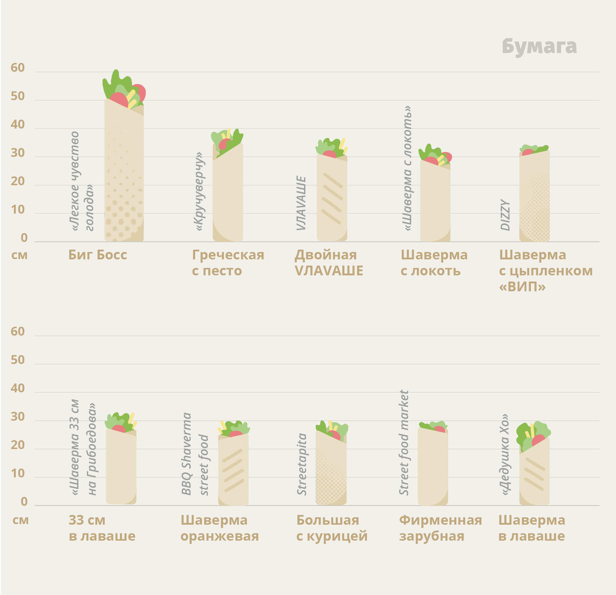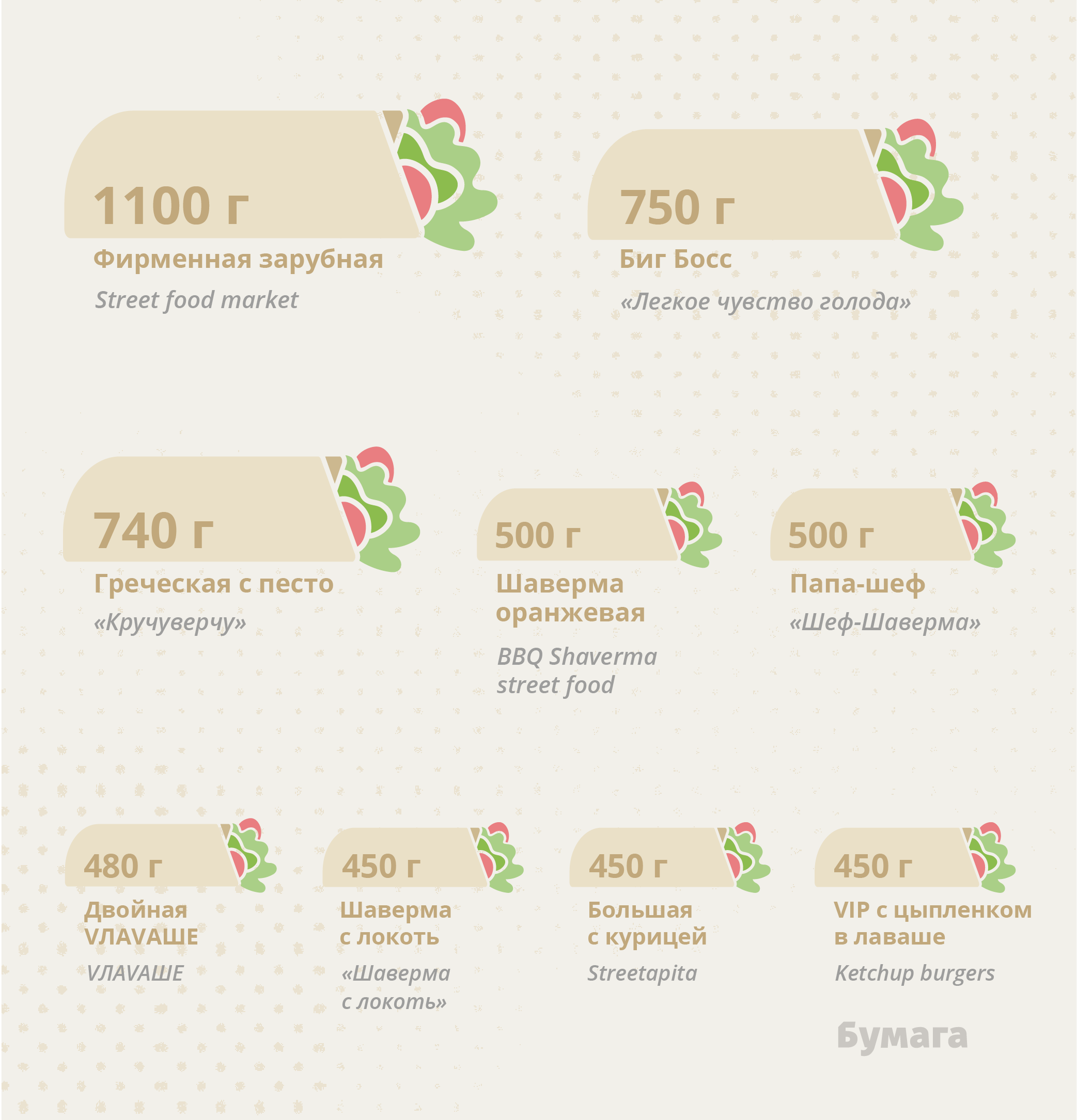 В августе «Бумага» опросила более 45 кафе и баров в центре Петербурга и выяснила, где готовят самую большую шаверму.