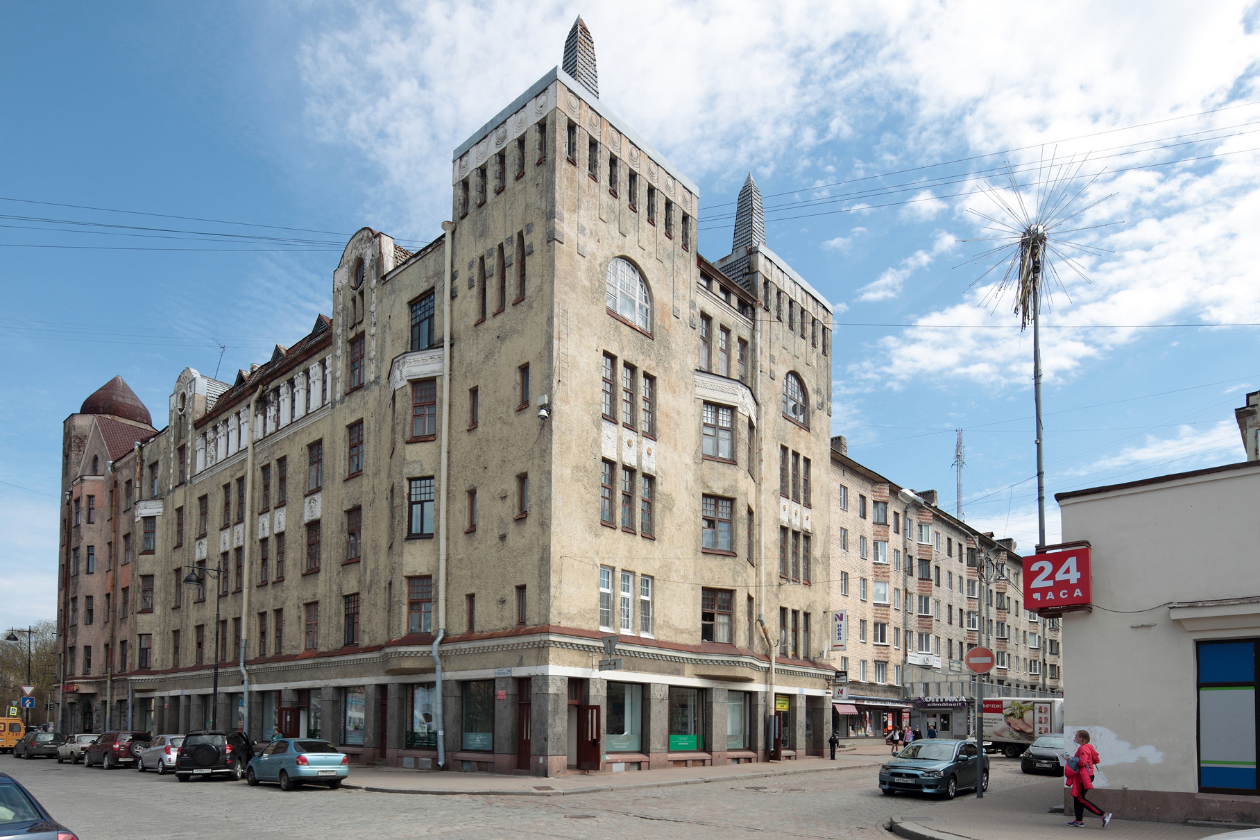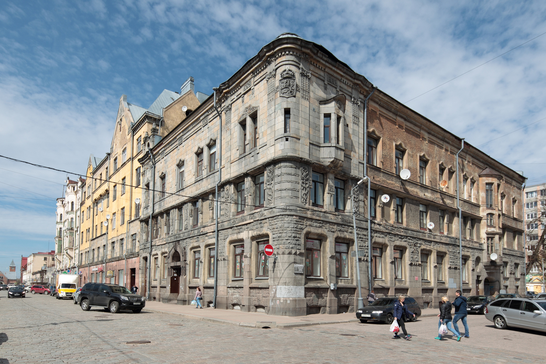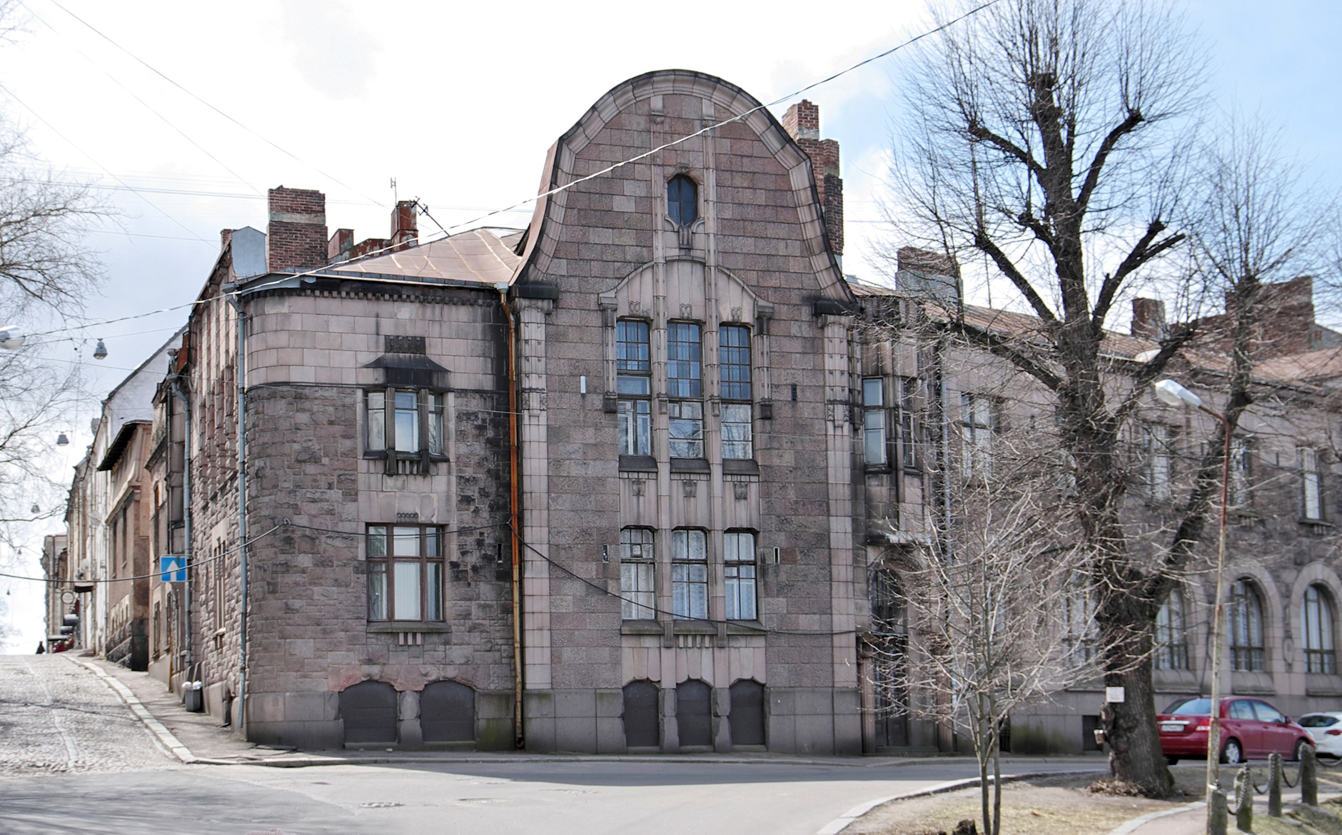 • Еще одну работу Шульмана все того же 1904 года отыщите на Вокзальной улице, 7. Этот дом с гранитным фасадом принадлежал финской фирме «Хякли, Лаллукка и Ко». Кстати, именно ее хозяин Юхо Лаллукка пожертвовал деньги на постройку библиотеки Аалто. Этот дом впечатляет разнообразием барельефом от скульптора Эмиля Халонена и своей ухоженностью.