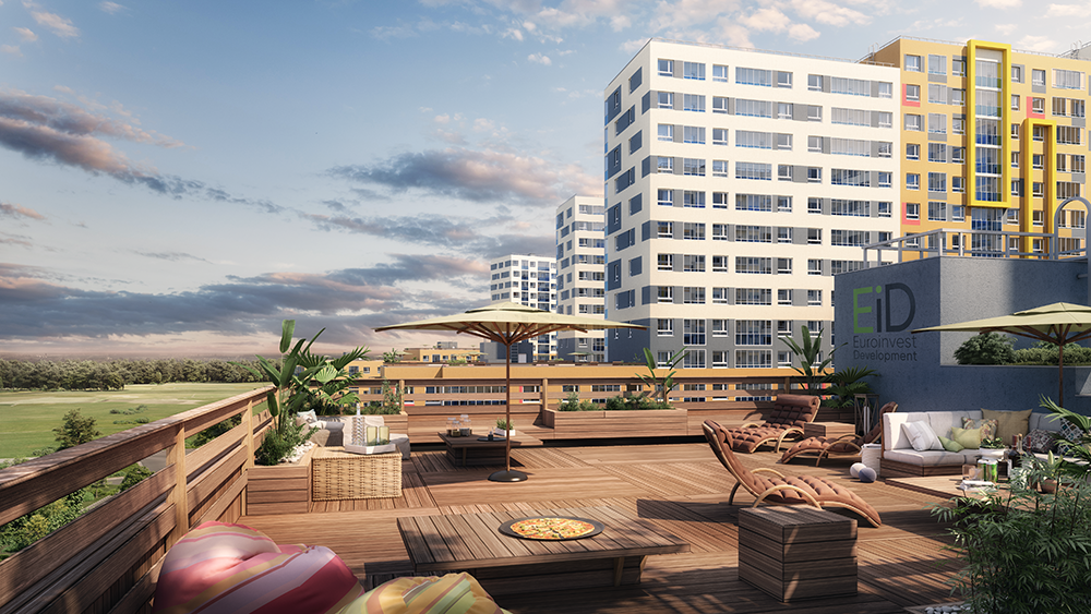 Формат комплекса называется 3iD — это концепция жилья, разработанная Euroinvest Development совместно с урбанистами, социологами и психологами жилой среды. Первая составляющая — помещения и пространства для общения с соседями. Вторая — личный кабинет с ID-идентификатором. Третья — разные планировки и варианты отделок квартир.