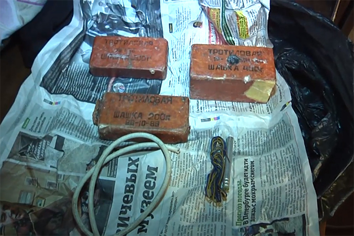 Центр общественных связей ФСБ также опубликовал видео задержания. На нем Ефимов сообщил, что в ангаре, в котором его задержали, находится триперекись ацетона. Это взрывчатое вещество, которое еще известно как пероксид ацетона. Британская газета The Times писала, что взрывчатку на основе этого вещества использовал террорист-смертник в Манчестере в мае.