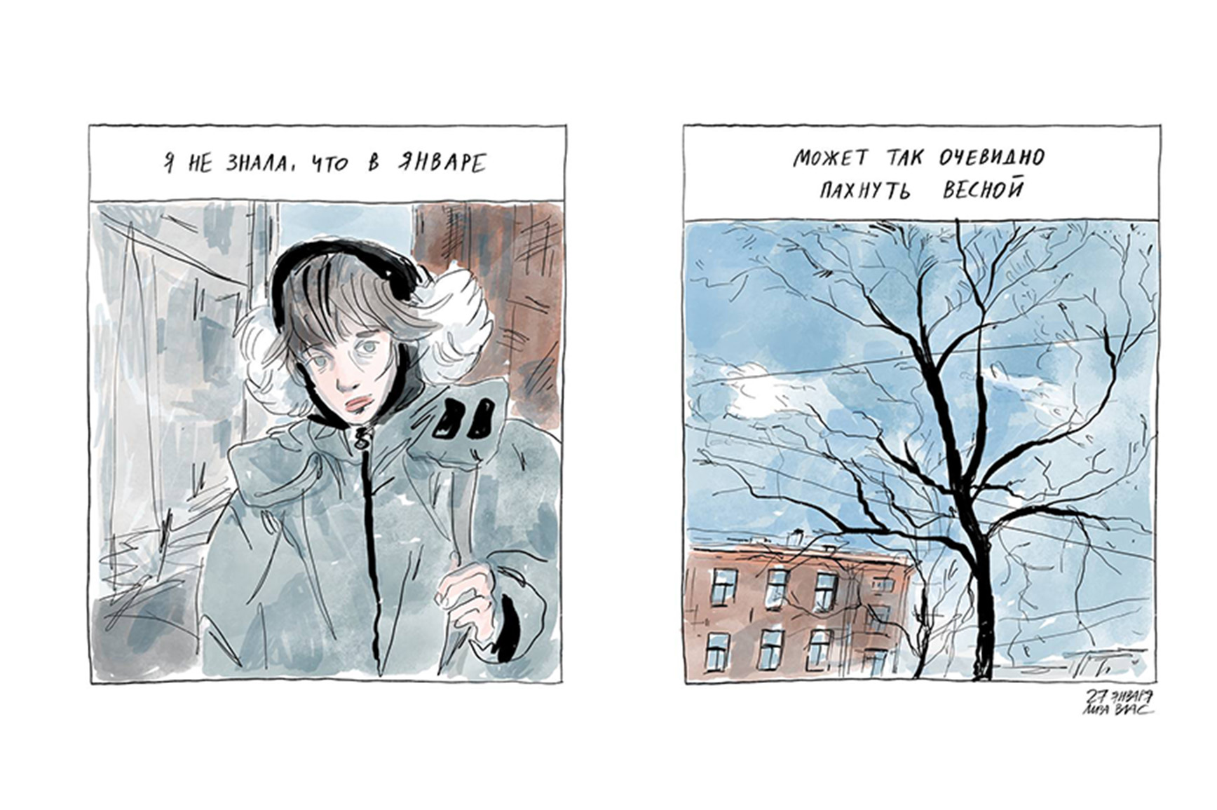 Мне в целом интересна документалистика, журфак дал о себе знать. Например, сейчас я сижу и рисую [наш диалог] и хочу зафиксировать то, что я вижу перед собой. И мне нужно это сделать быстро. Я не смогла бы изобразить нас маслом, поэтому использую линер.