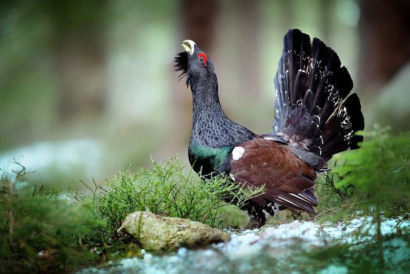 Один из подвидов глухарей, которые исторически жили в лесах Ленобласти, — чернобрюхий. Прошлой весной его включили в Красную книгу России. Как сказано на сайте Красной книги, особенность птицы в том, что во время брачного периода самец демонстрирует минимальную бдительность и часто попадается в руки охотников. Вот как выглядит чернобрюхий глухарь.