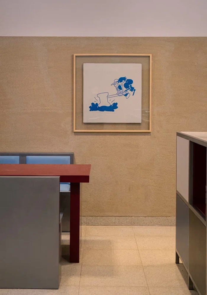 Минималистичный интерьер заведения вдохновлен американскими дайнерами: в центре первого зала установили барную стойку. Во втором выставили голубые диваны и столы.
