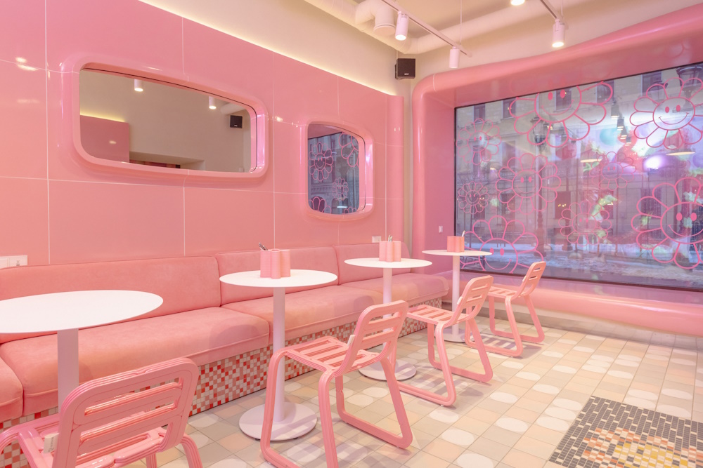 Пекарню в двух шагах от Невском проспекта запустила ресторанная группа итальянца Антонио Фреза, создателя Sea, Signora, Saviv и других заведений. У заведения броский и заметный дизайн: пространство оформили в розовом и красном цветах, люстру выполнили в виде клубники, а мебель для K-Bakery сделала из переработанного пластика компания Eburet.
