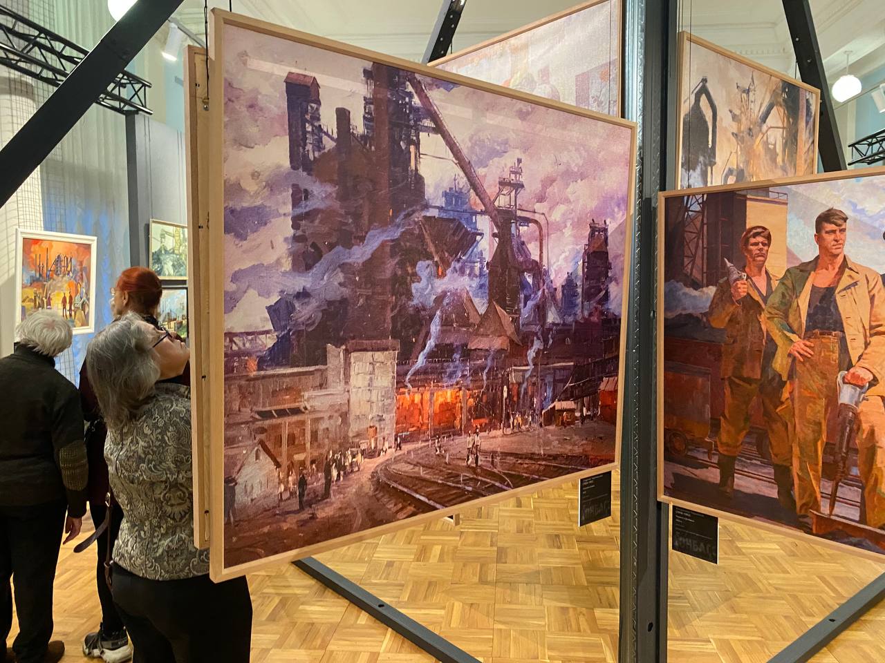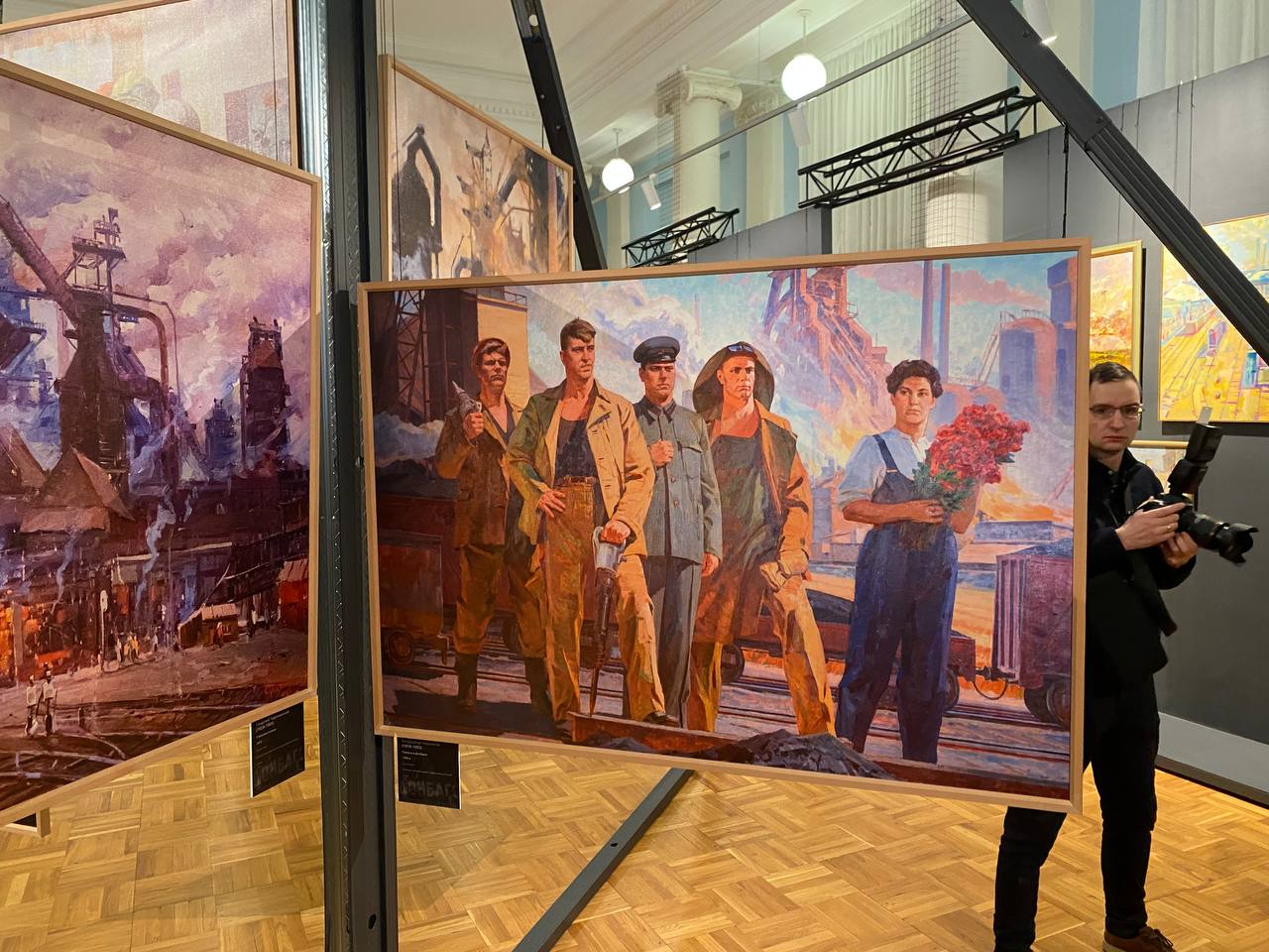На представленных полотнах изображены рабочие, а также угольные и сталелитейные заводы. Выставка будет открыта до 24 февраля 2023 года.
