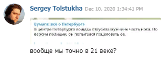 Но многие заметили, что эта новость — вполне в духе Петербурга, «прославившегося» расчленениями («Бумага» ранее подробно про это рассказывала). Пользователи предполагали, что нос выбросили в Мойку — вспоминая обстоятельства убийства, совершенного историком Олегом Соколовым.