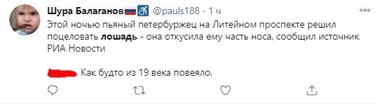 В твиттере также вспомнили еще одного петербуржца, который не боится целовать лошадей.