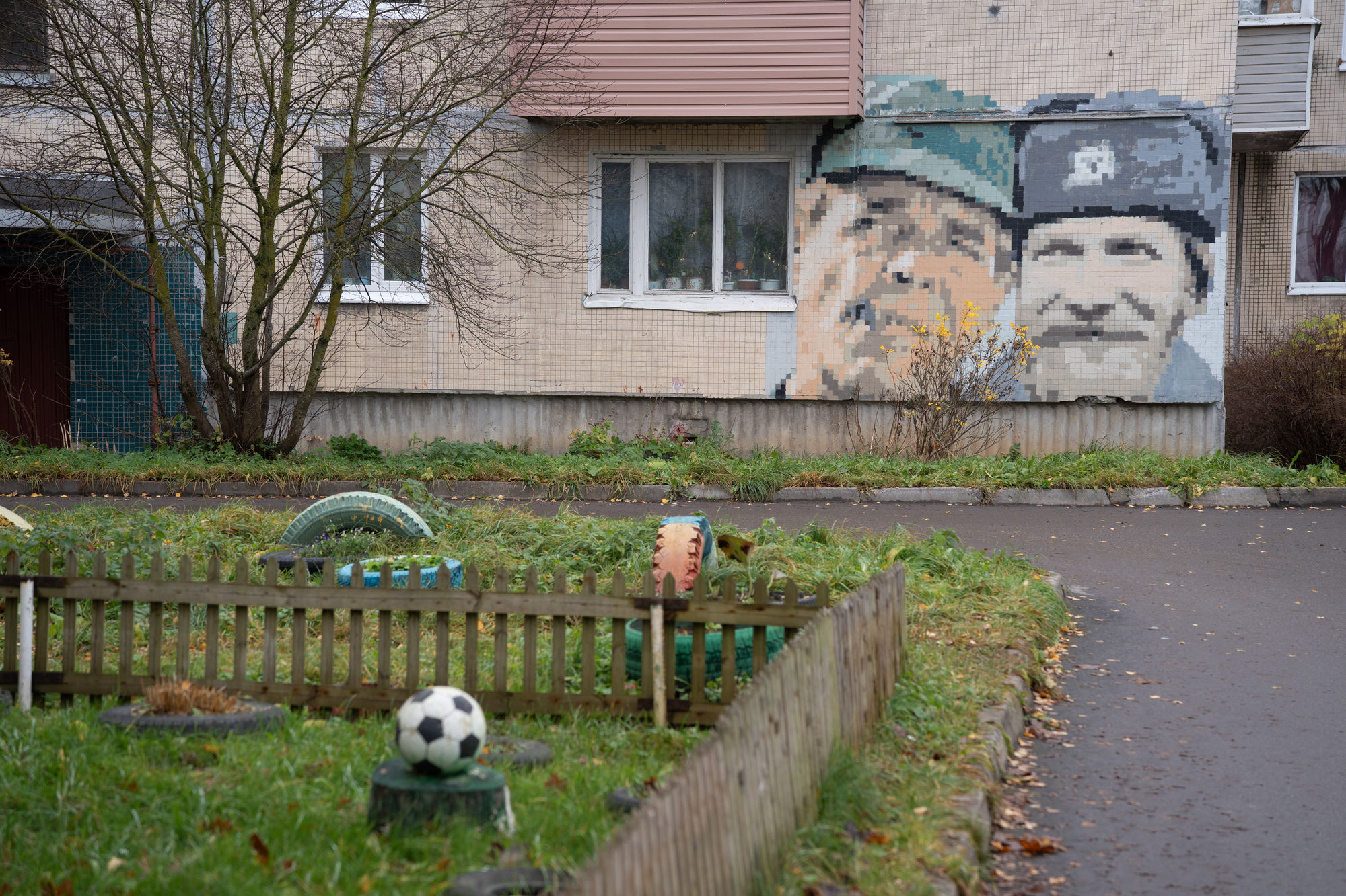 На панельках в Елизаветино — пиксельные портреты Кобейна, Горшка, Хоя и других легенд. Это работы Андрея Гвоздя — бывшего трубочиста Эрмитажа (и панка)