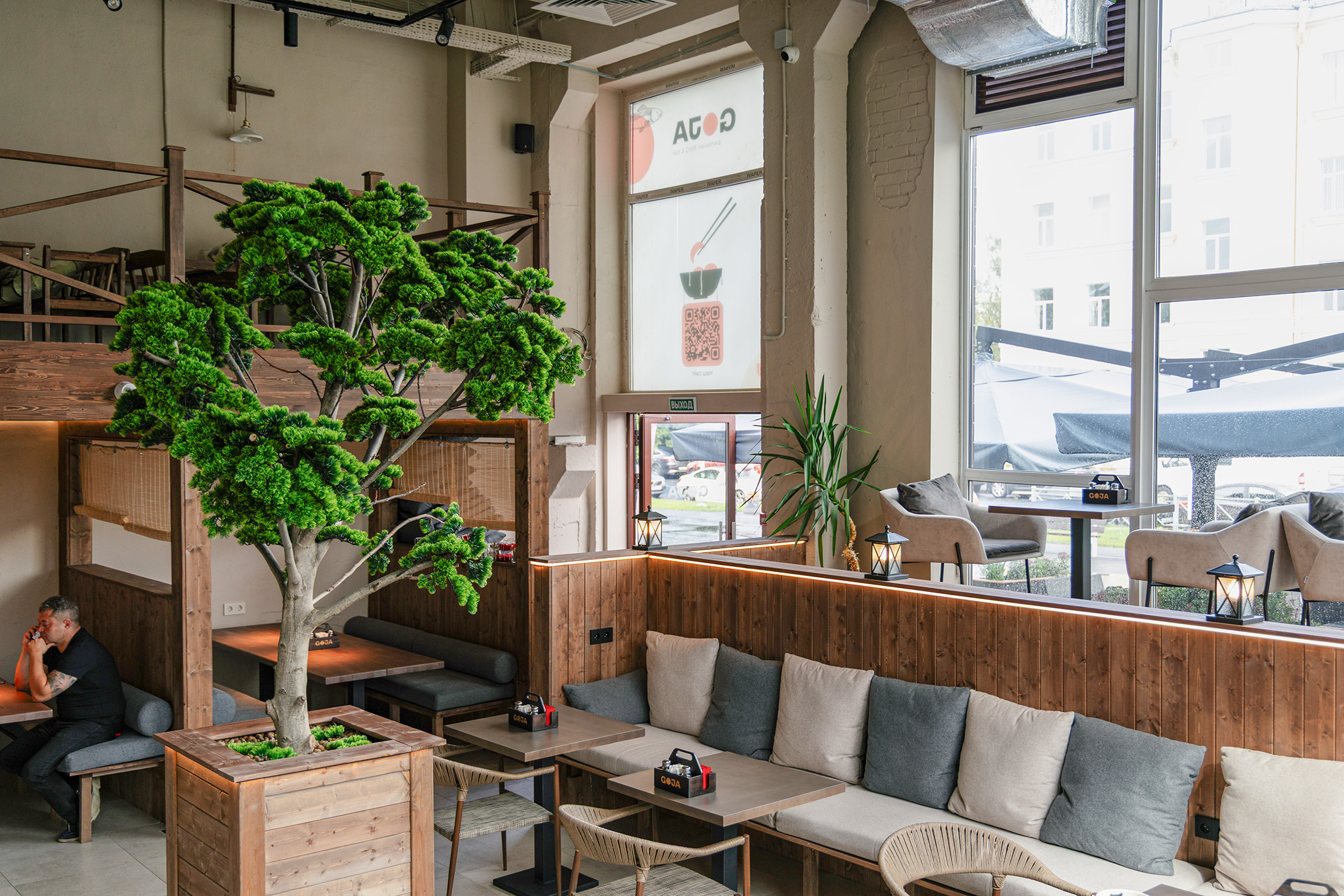 Осенью та же ресторанная группа запустила на Газовой еще один проект — филиал паназиатского заведения Goja, работающего на барной линии «Севкабель Порта». Двухэтажное помещение украсили рисунками художников, зеленью и неоновыми вывесками.