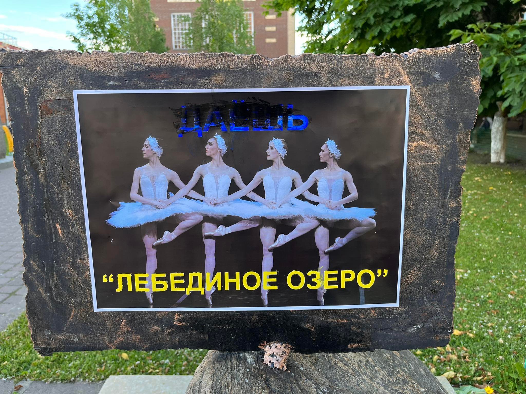 Потом плакат на камне напоминал о путче августа 1991 года, когда члены ГКЧП пытались захватить власть в СССР, а по телевизору вместо новостей транслировали балет «Лебединое озеро».
