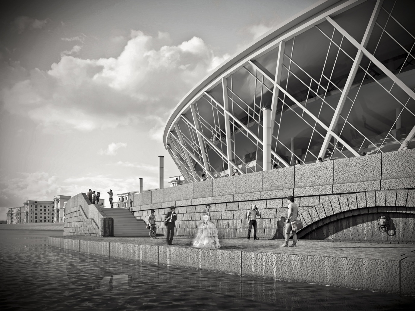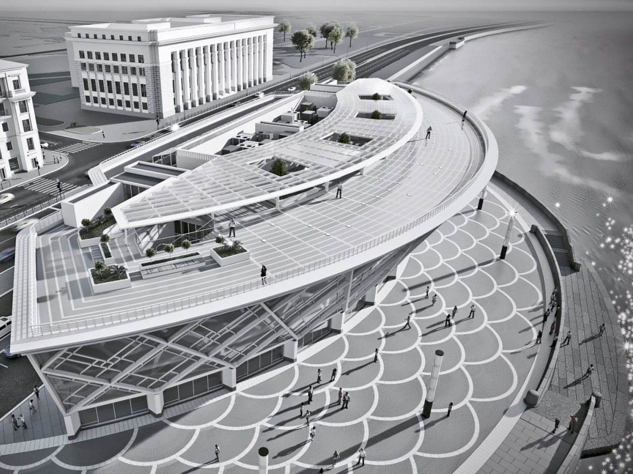 Общая площадь здания по проекту — около 8 тысяч квадратных метров, а высота — 17 метров. На улице проектировщики предусмотрели подземную и наземую стоянки на 37 машин, зону отдыха, спуск к воде и пирс для причала малых судов.