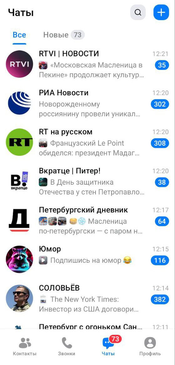К 19 февраля 2026 года из 172 тысяч публичных каналов в мессенджере почти 2,3 тысячи упоминают в названии или описании профиля Петербург — то есть всего около 1,3 %, посчитала «Бумага» на основе данных сервиса Maxstat, агрегирующего статистику мессенджера.