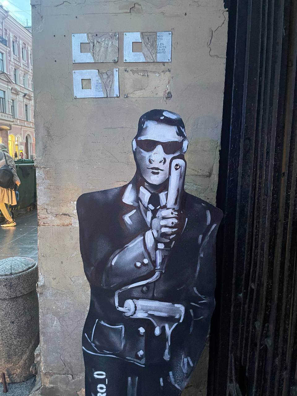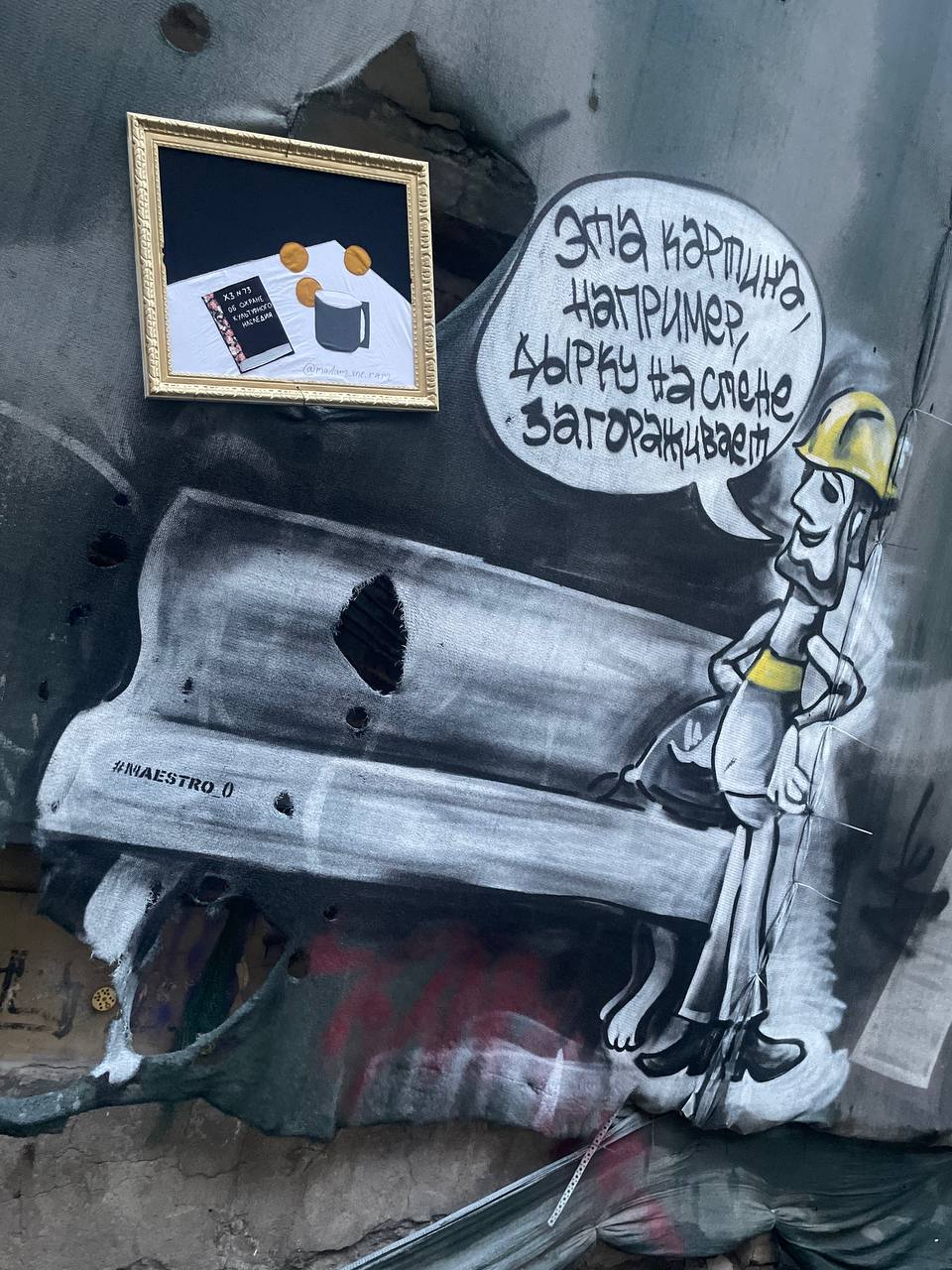 — С 2020 года. Я ровно в ковид начал этим заниматься. После того как познакомился с творчеством Павла Пухова (Паша 183 — известный уличный художник 2000-х, работавший в Москве и Петербурге в основном на остросоциальные темы — прим. «Бумаги»). Я изучил всю информацию про его творчество, которая есть в открытом доступе. Очень вдохновился и понял, что мне это очень близко, — и почему я не могу делать что-то похожее, что не в галерее будет выставляться, а делать от души и работать с пространством, с окружением? Андеграунд — это высшая форма проявления искусства. Я не сторонник коммерческих вещей в силу своих внутренних убеждений. Есть современное искусство хорошее, действительно достойное внимания, а есть очень много того, что представляет собой мыльный пузырь.