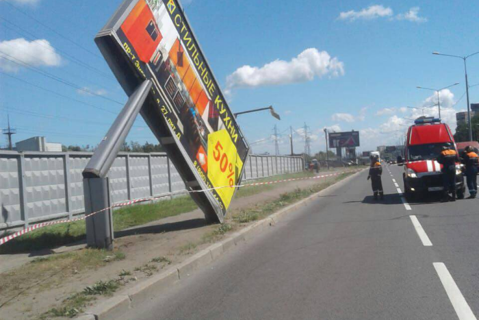 Из-за сильного ветра в Петербурге 20 июня падают деревья, столбы и рекламные щиты, сообщают очевидцы в соцсетях. Известно о таких случаях в Пушкине, Шушарах, на улице Розенштейна и на севере города.