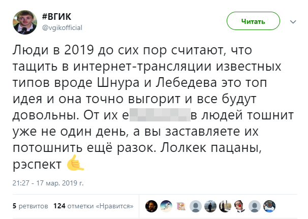 Как пишет TJ, в историях в инстаграме Командная заявила, что Шнуров и Лебедев «закопали ее репутацию футбольного и спортивного журналиста» и «нормальной девушки, которая разговаривает про футбол», а также сказала, что ей стыдно за эфир. Сейчас в историях Командной эти записи отсутствуют.
