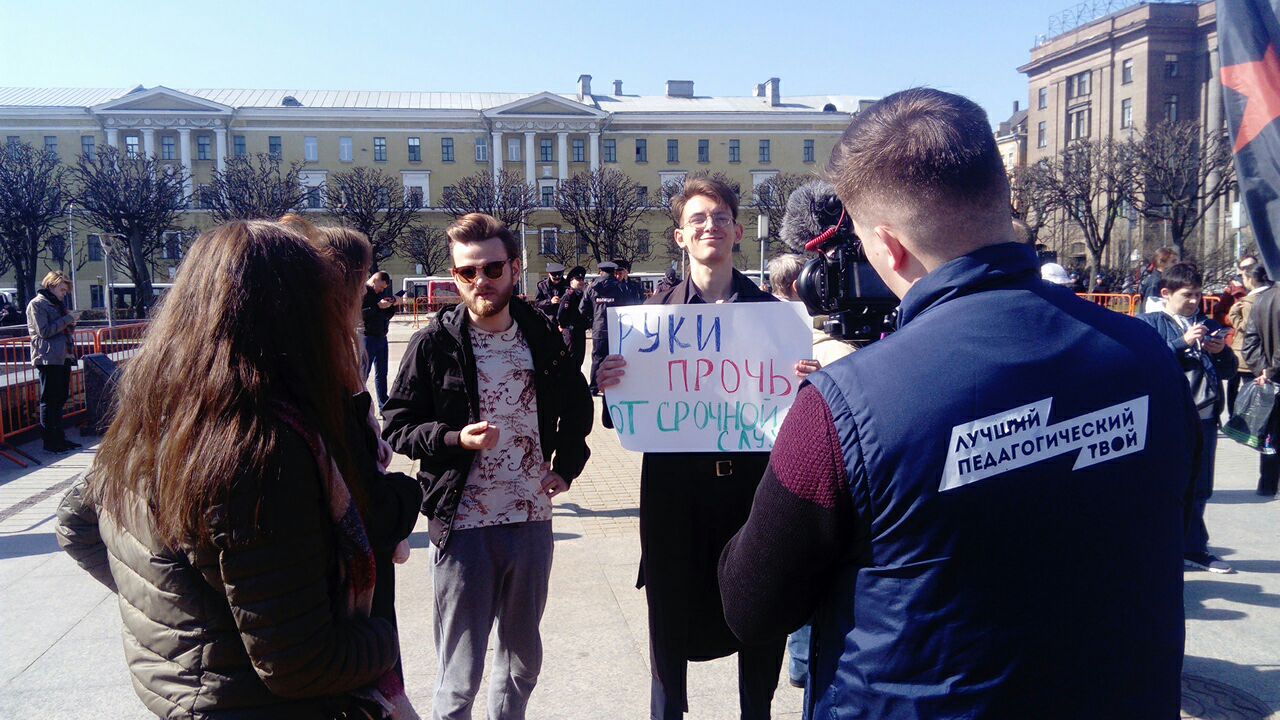 — Срочная служба ломает людям жизнь. <… > Призывники возвращаются из армии покалеченными и даже мертвыми. <…. > На Россию собирается кто-то нападать? Я думаю, что нет. Но власть сама отправляет за пределы России зеленых и других человечков воевать. <… > Срочная служба обходится дешевле, чем контрактная. Но она нужна как пушечное мясо и бесплатная рабочая сила для генералов, которых у нас больше, чем в любой другой стране мира. <…. >. Что нужно, чтобы служба стала добровольной? Не только наше сопротивление, но и смена власти.