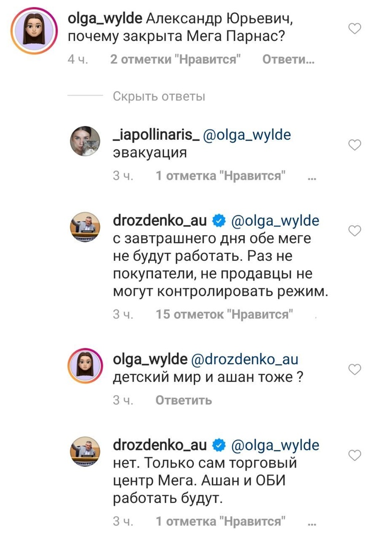 Губернатор Ленобласти Александр Дрозденко в инстаграме сообщил, что торговые центры «МЕГА Дыбенко» и «МЕГА Парнас» с 17 мая снова закроют — из-за того, что покупатели и продавцы не соблюдали рекомендации властей. «Ашан» и OBI при этом продолжат работу.