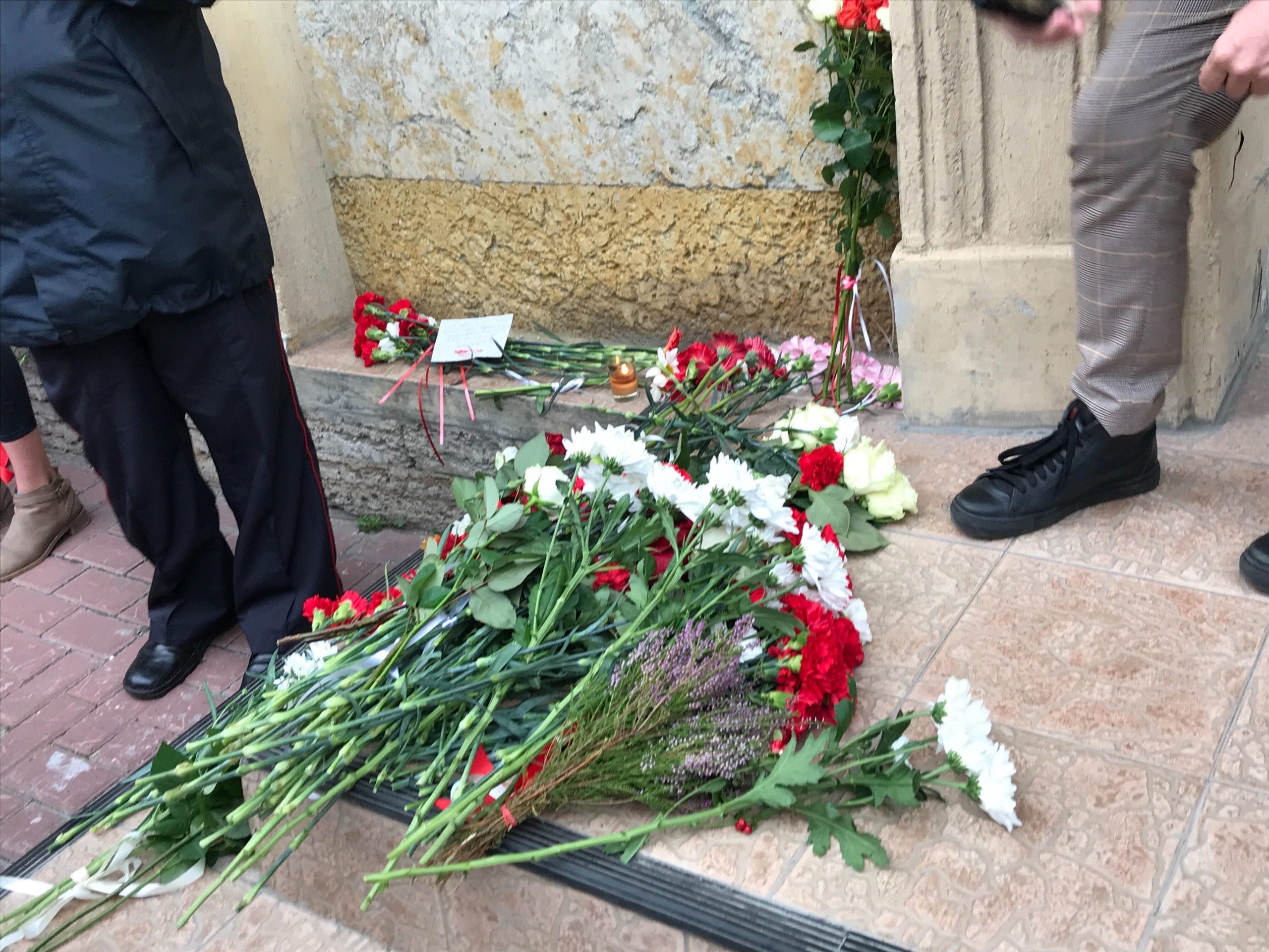 Обновление от 19:30. Корреспондент «Бумаги» сообщает, что на акции собралось около 100 человек. Некоторые из них несут цветы к отделению посольства. На месте дежурит около 10 сотрудников полиции, проезжая часть огорожена.