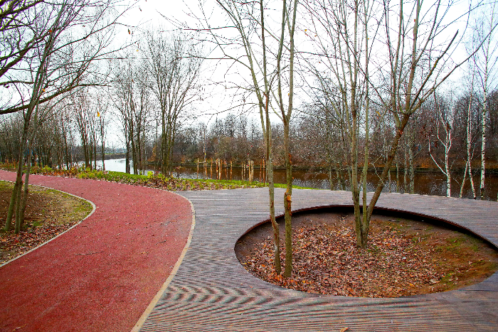 При благоустройстве был сохранен природный ландшафт и воплощен принцип безбарьерной среды.