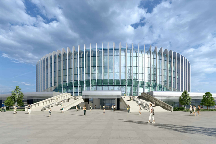 На участке должна появиться большая ледовая арена высотой в девять этажей, два из которых будут подземными. Фасад хотят выполнить из стекла, камня и металлических элементов, которые бы имитировали внешний вид хоккейной клюшки. «Облик отсылает к творениям советских архитекторов», — говорит Иван Смирнов, гендиректор компании «Союз-Проект», которая выполнила проектную документацию.