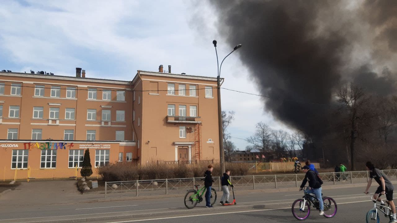 По словам Румянцева, на месте происшествия много дыма, «пахнет гарью и пластмассой горящей», из-за чего местные жители остаются дома и носят маски. При этом у набережной напротив «Невской мануфактуры» собралось более 20 человек, наблюдающих за пожаром. Полиция их отгоняет. Рядом на велосипедах и самокатах проезжали дети.