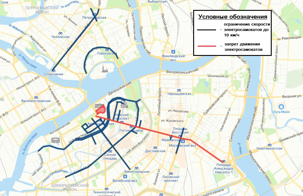 - Ограничить скорость электросамкатов до 10 км/ч на туристических улицах, в том числе прилегающих к Невскому проспекту и у основных достопримечательностей.