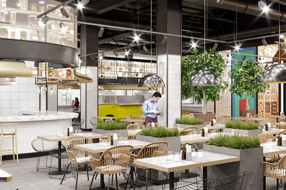 Общая площадь пространства составляет 3 тысячи квадратных метров. На ней разместят фуд-холл с десятками корнеров, продуктовый маркет с фермерскими овощами и фруктами, а также зоны отдыха и сцену для спектаклей и концертов.