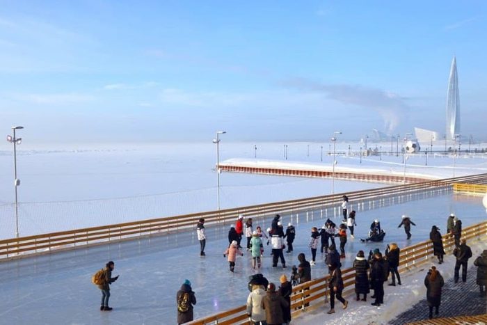 «Газпром» намерен расширить каток, который заработал у спорткомплекса этой зимой. Его площадь составляет 1100 метров.