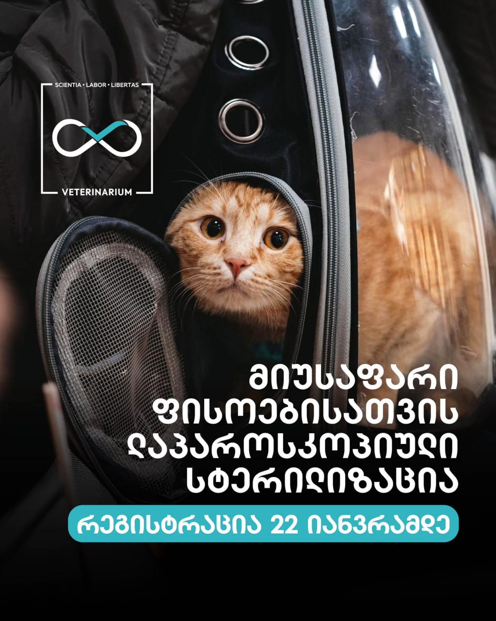 Детали. Стерилизация будет лапароскопической — это «менее инвазивный метод и характеризуется более простой реабилитацией», сказано в анонсе. Условия. Вместо привычной цены в 200 лари бездомных животных стерилизуют за 50. Учтите, что речь идет только о кошках. Для участия необходимо зарегистрироваться. Срок — до 23 января. Нужно позвонить на номер +995 32 206 05 95 или написать клинике в фейсбуке.