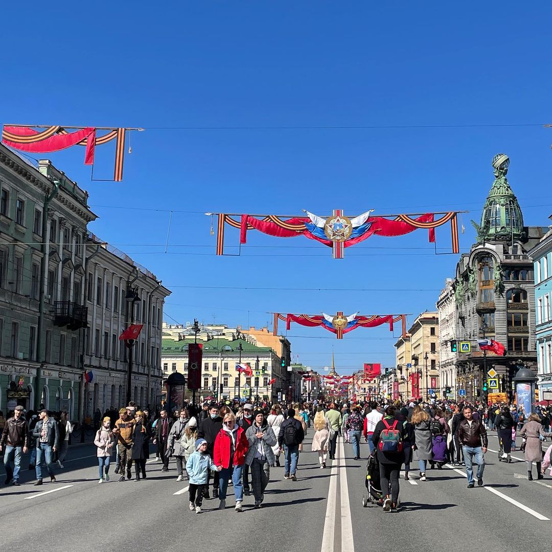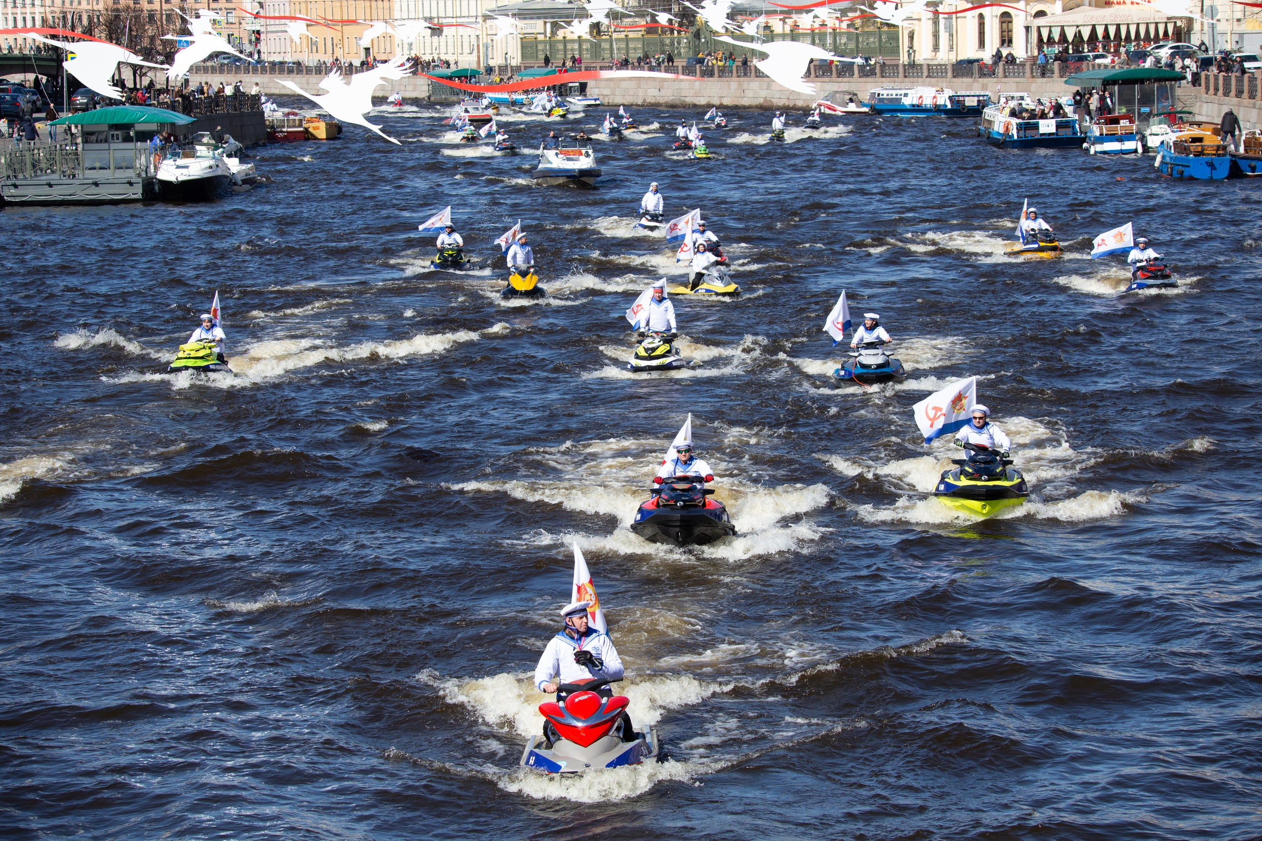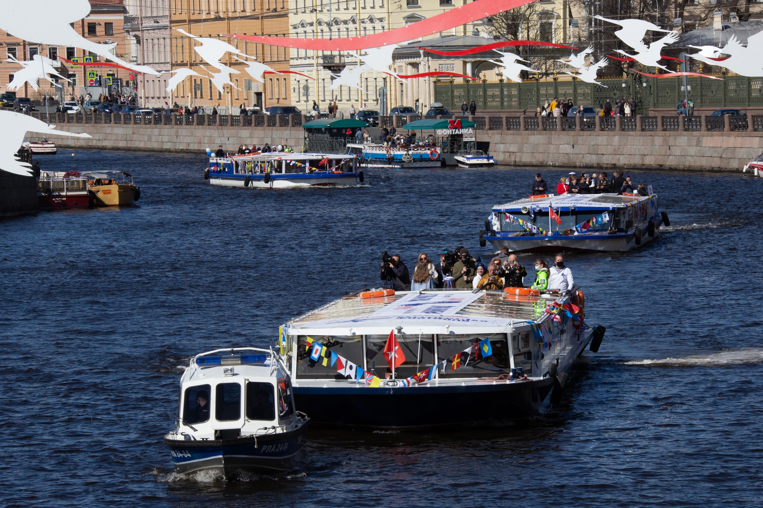 Днем состоялась акция «Бессмертная флотилия». Празднично украшенные суда с ветеранами на борту и около 100 гидроциклов под флагами ВМФ прошли Кронверкский пролив, Фонтанку, Крюков канал, Мойку, Зимнюю канавку.