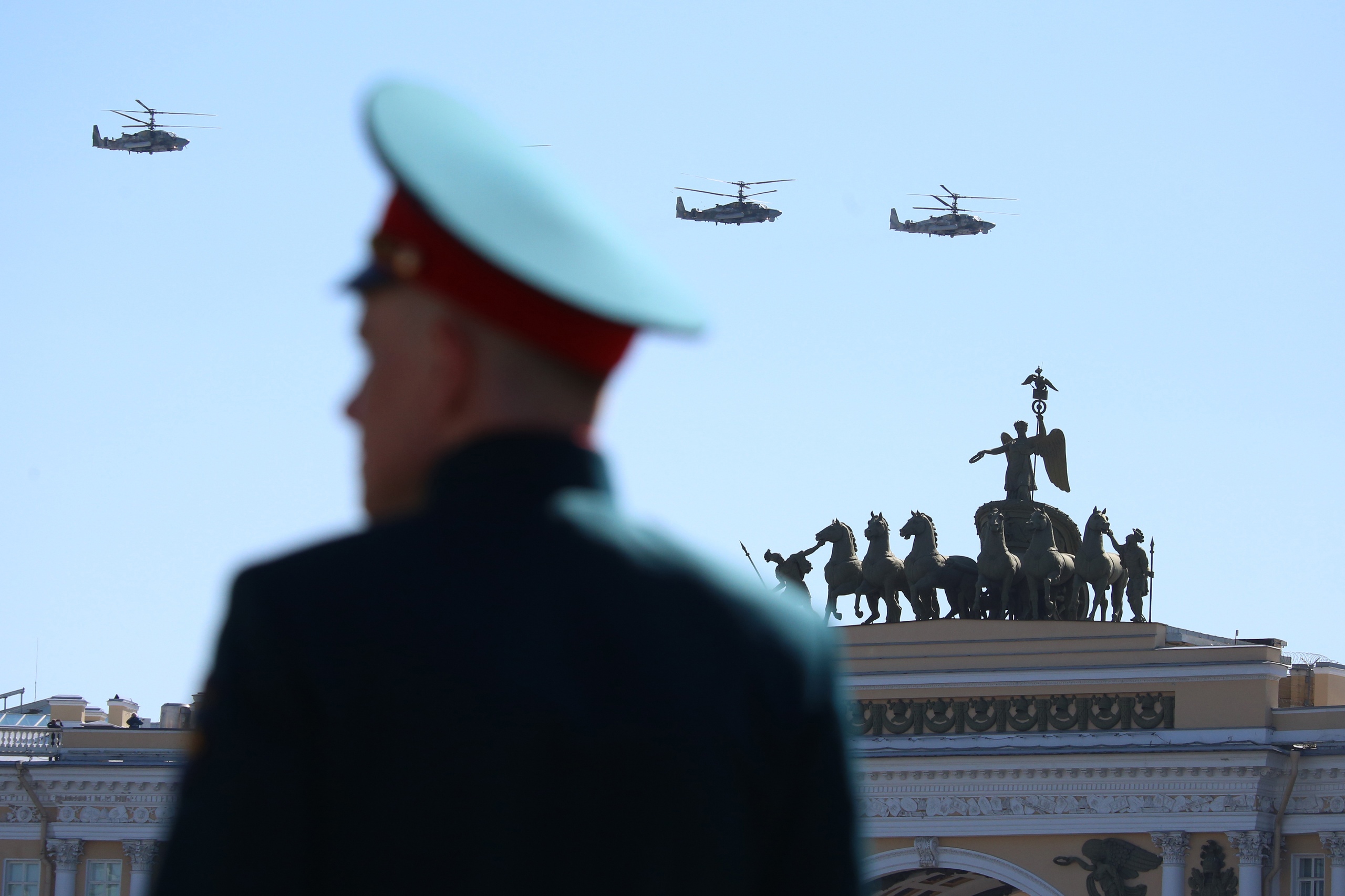 На Дворцовой закончился парад Победы. По площади проехала военная техника и прошли 4,5 тысячи военнослужащих, а над центром города пролетели вертолеты и самолеты.