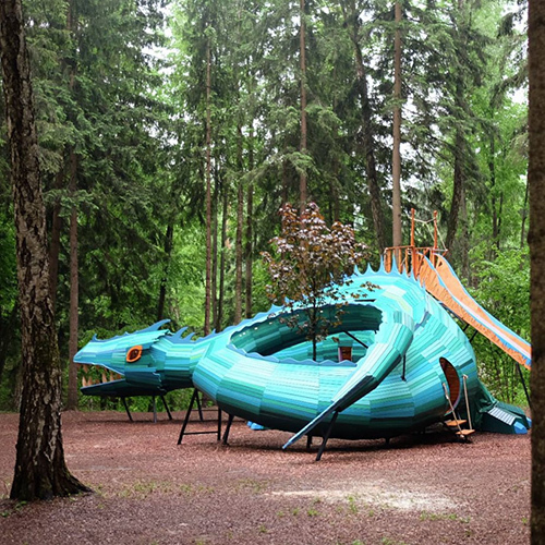 Петербургский проект Paraneba создает интерактивные игровые площадки: замки, дома на деревьях, есть даже дракон с движущимися крыльями. Дети могут забираться внутрь, взаимодействовать с мебелью, находить спрятанные в объекте тайники. Разгадка всех шифров такого пространства может занять не один год.