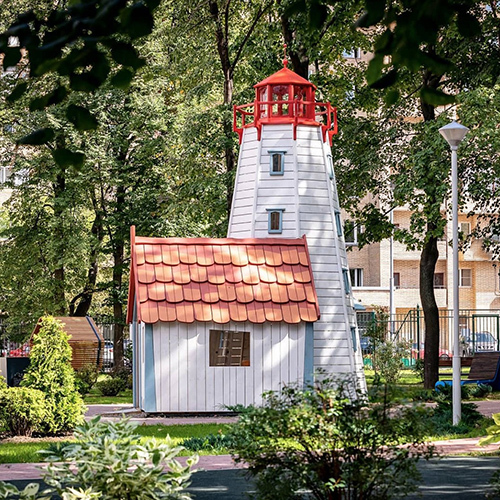 Со временем я всё больше думал об архитектуре для детей. Копились идейки, мы рисовали эскизы и делали 3D-рендеры, потом поставили два домика на Новгородской улице в Петербурге — дом-шар и лесной замок. Оттуда пришли первые заказы. Мы увлеклись и решили специализироваться на фантазийной архитектуре.