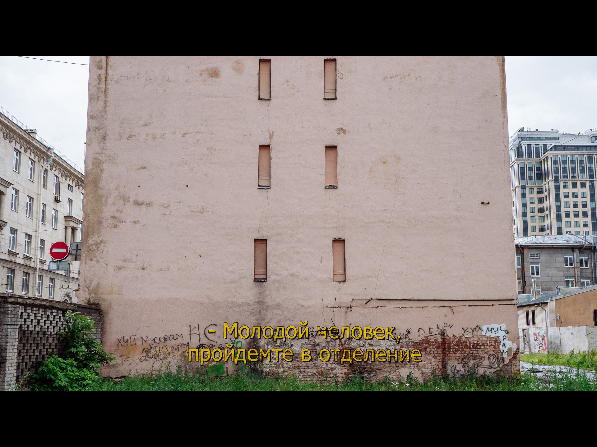 С конца мая художник Владимир Абих оставляет на стенах домов в Петербурге надписи краской, которые выглядят как субтитры из фильмов. Таким образом автор хочет подчеркнуть кинематографичность локаций и, как он говорит, превратить их в «сцену несуществующего фильма». Некоторые фотографии работ выглядят как фотошоп — художник снимает их с разных ракурсов.