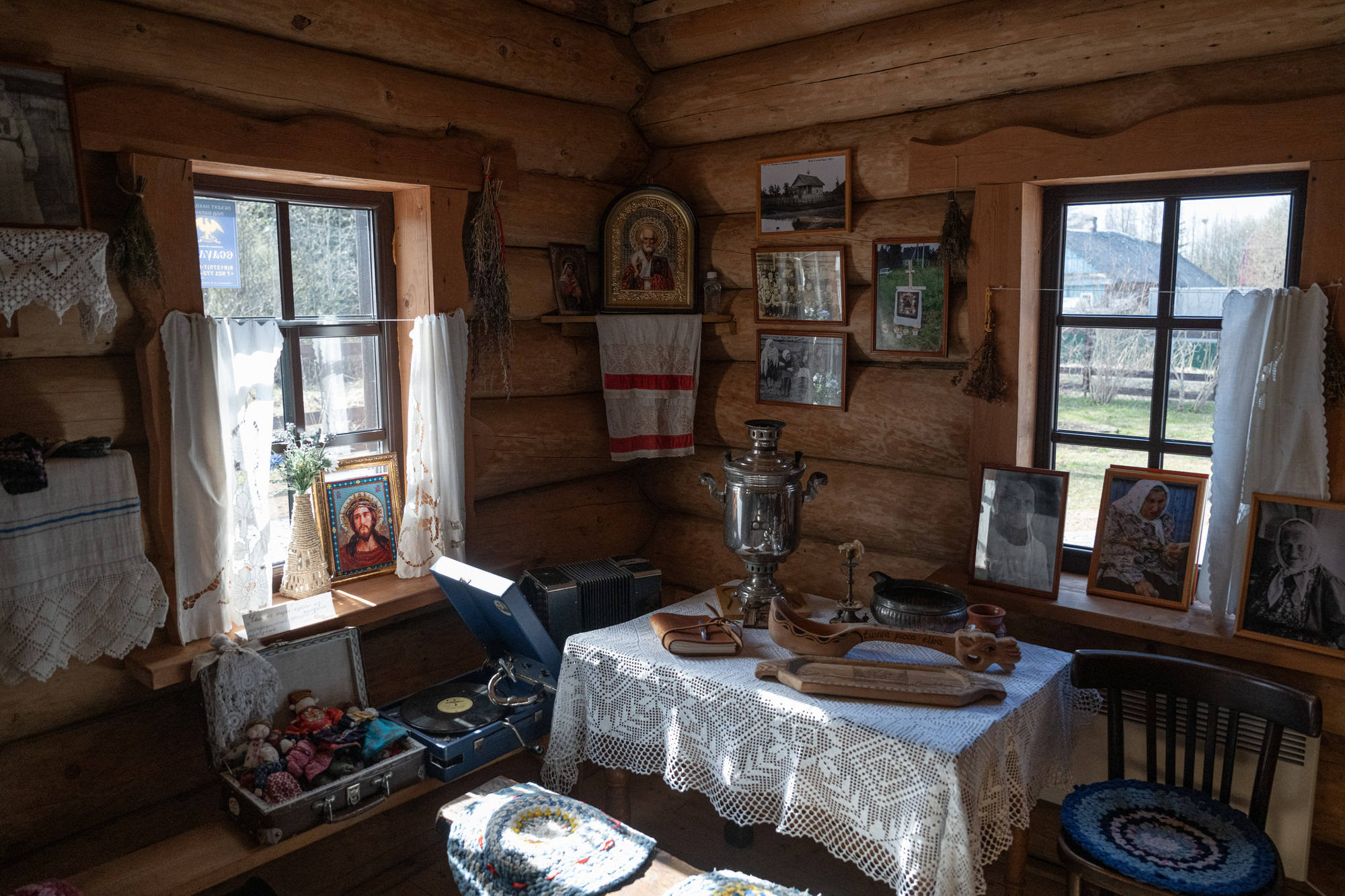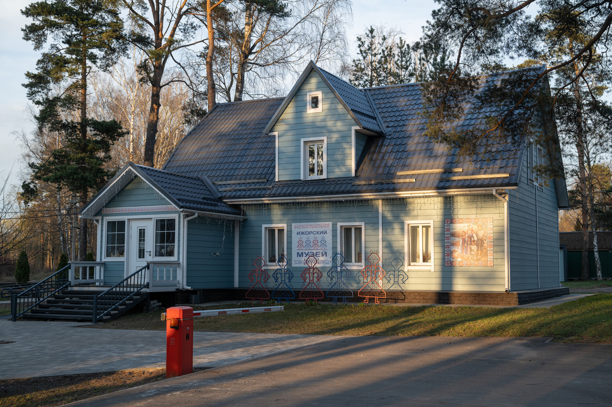 Музей в Лужицах выделяется на фоне обветшалых домов. Это новое бревенчатое здание, по фасаду украшенное каменной кладкой. Его возвели с нуля, два прошлых музея сгорели. Среди вожан ходят слухи, что специально подожгли. Что на самом деле произошло — неизвестно.