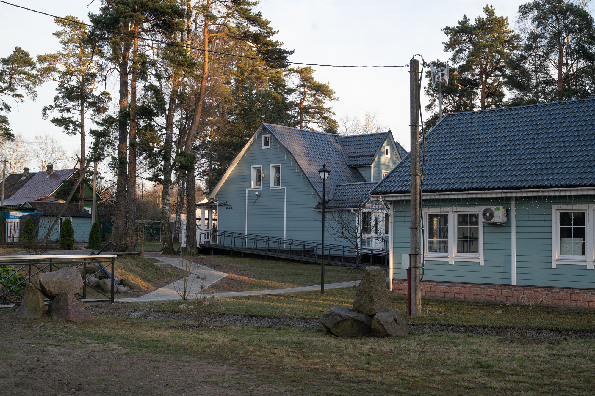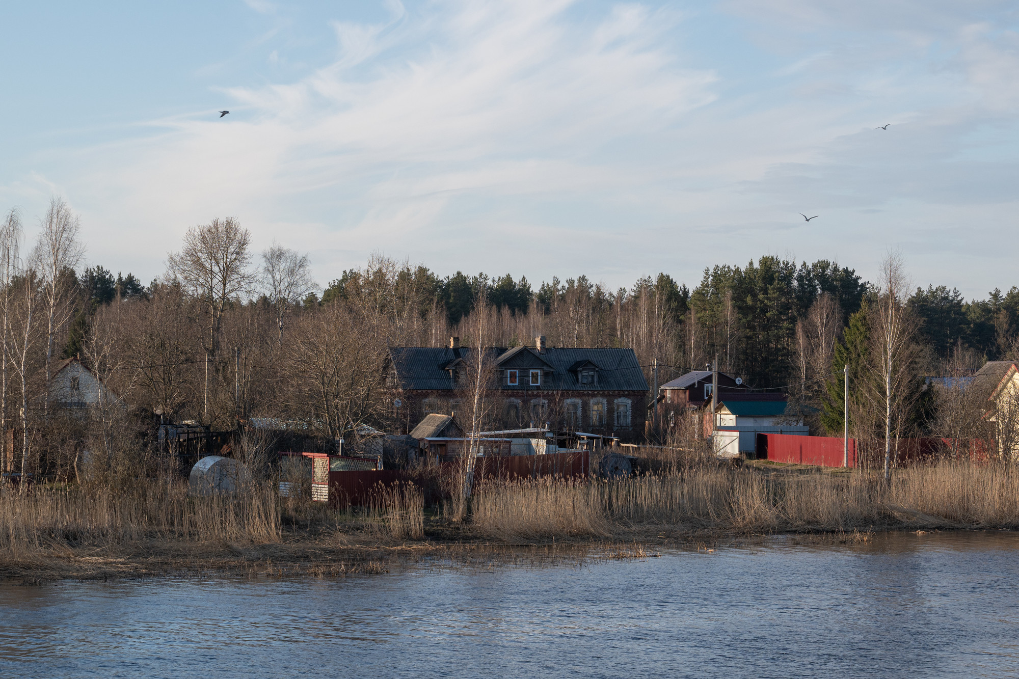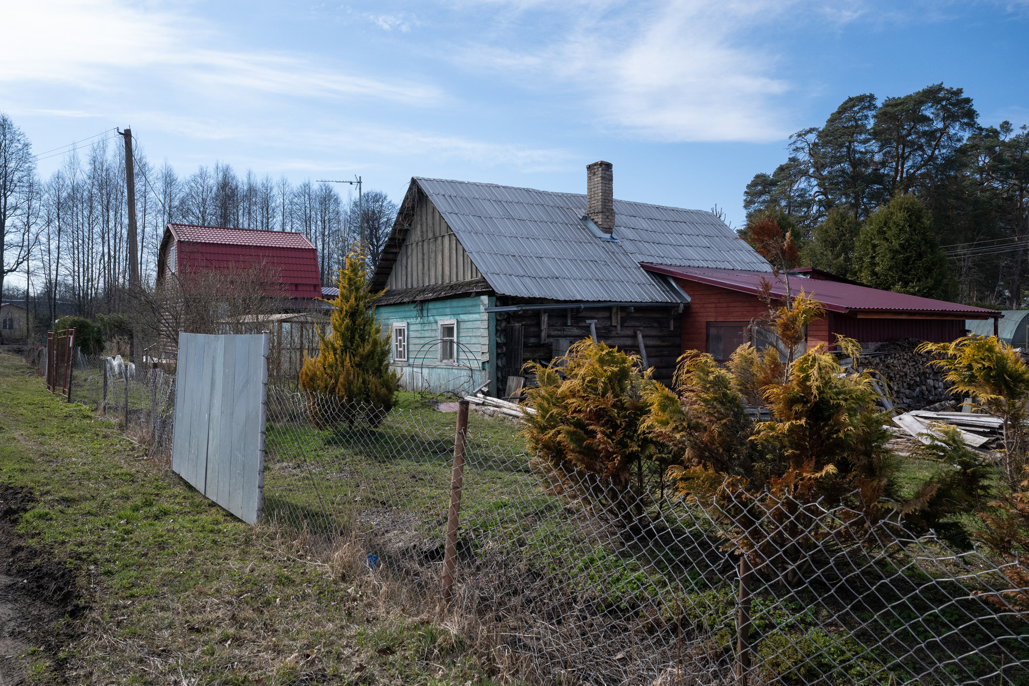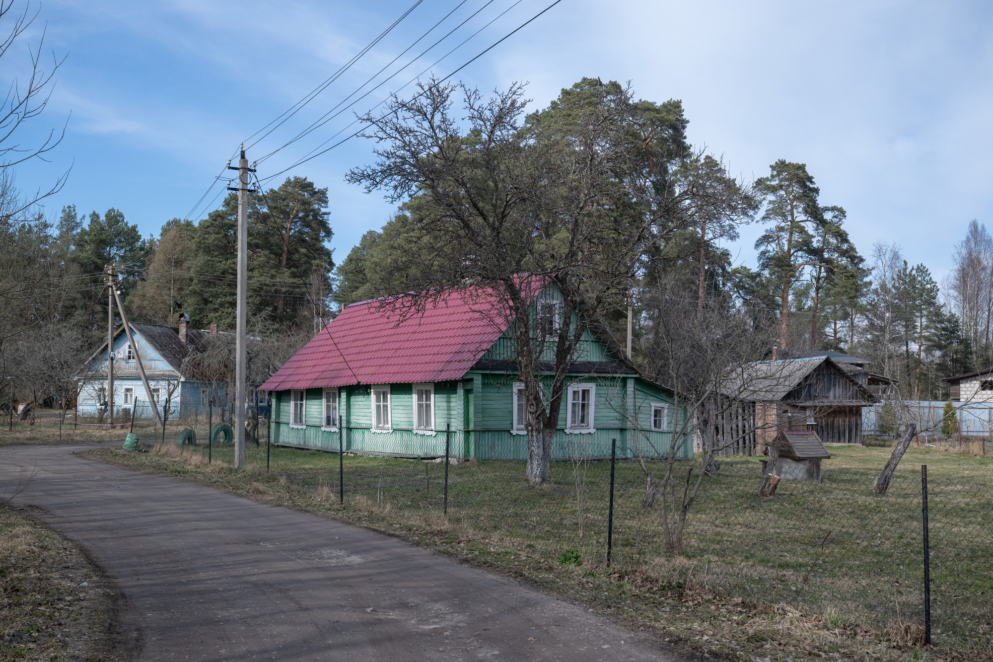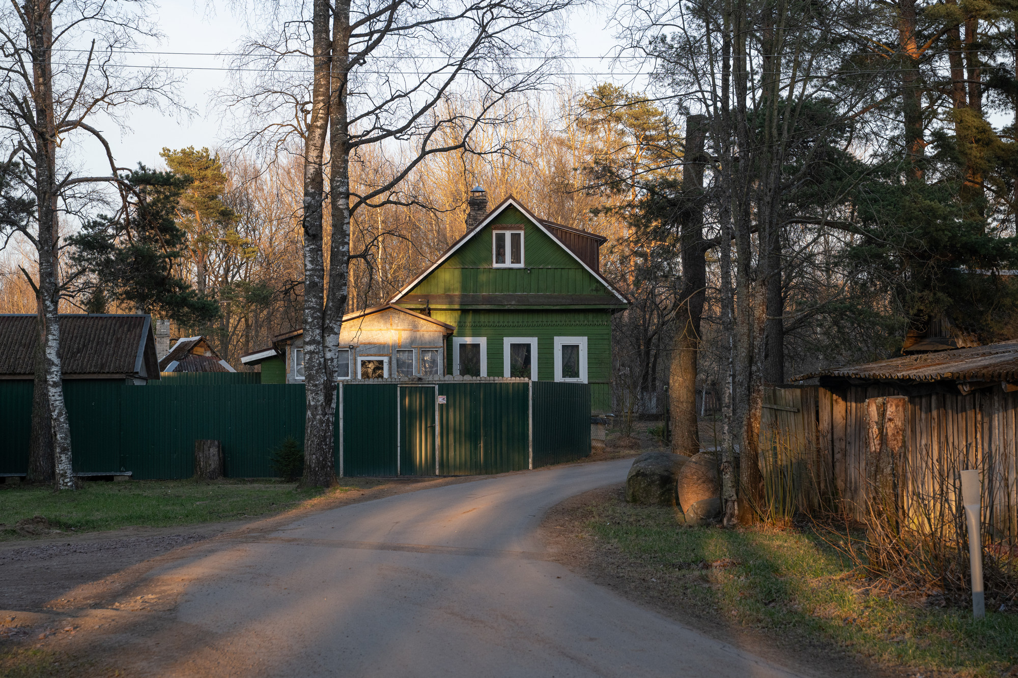 Рядом с музеем — несколько старых домов, напоминающих комаровские и сестрорецкие дачи. За забором зеленой избы смотрит в телефон поседевший мужчина с советским портфелем-дипломатом. На вид ему лет 50. С ним здороваются проходящие мимо школьники. Увидев нас, он выходит через калитку и рассказывает про достопримечательности: