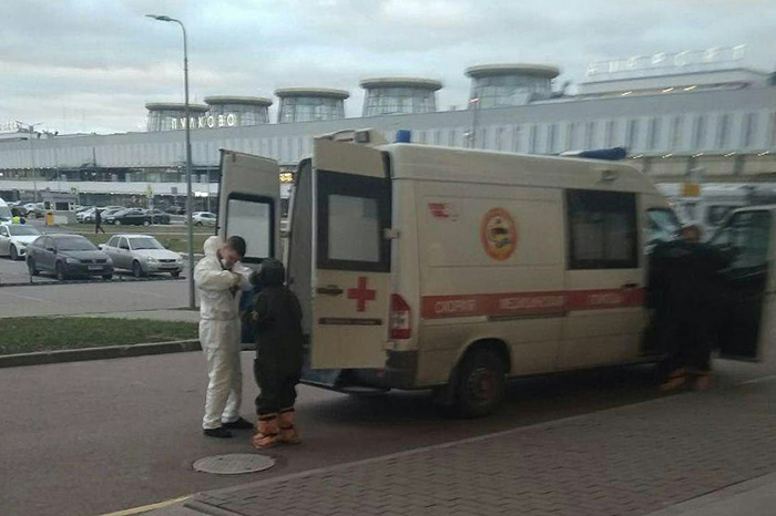 Из Пулкова госпитализировали мужчину с высокой температурой. Медики работали в костюмах химзащиты