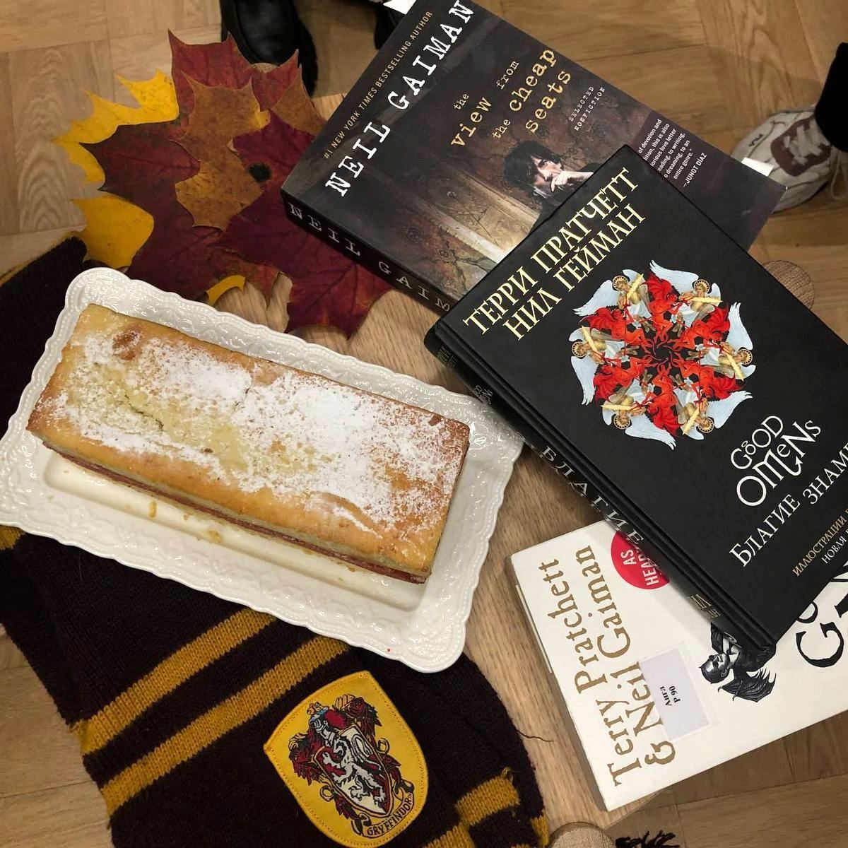 Иногда пейринг выходит по сущности — например, Марсель Пруст и печенье-мадленка из «Пенки» на Озерном; иногда по цветам — как с булочками из «Слоя» и нежным румянцем обложки «Фрагментов речи влюбленного»; иногда по настроению — лимонный пирог по рецепту «Самоката» и «Миссис Дэллоуэй» Вирджинии Вулф. Какие-то сочетания у нас сезонные — например, осенью мы читали «Птиц Америки» Лорри Мур под шарлотку; а пару раз мы даже пекли на встречи булочки, упомянутые в книгах, которые мы читали — так было с angel cake из «Благих знамений».