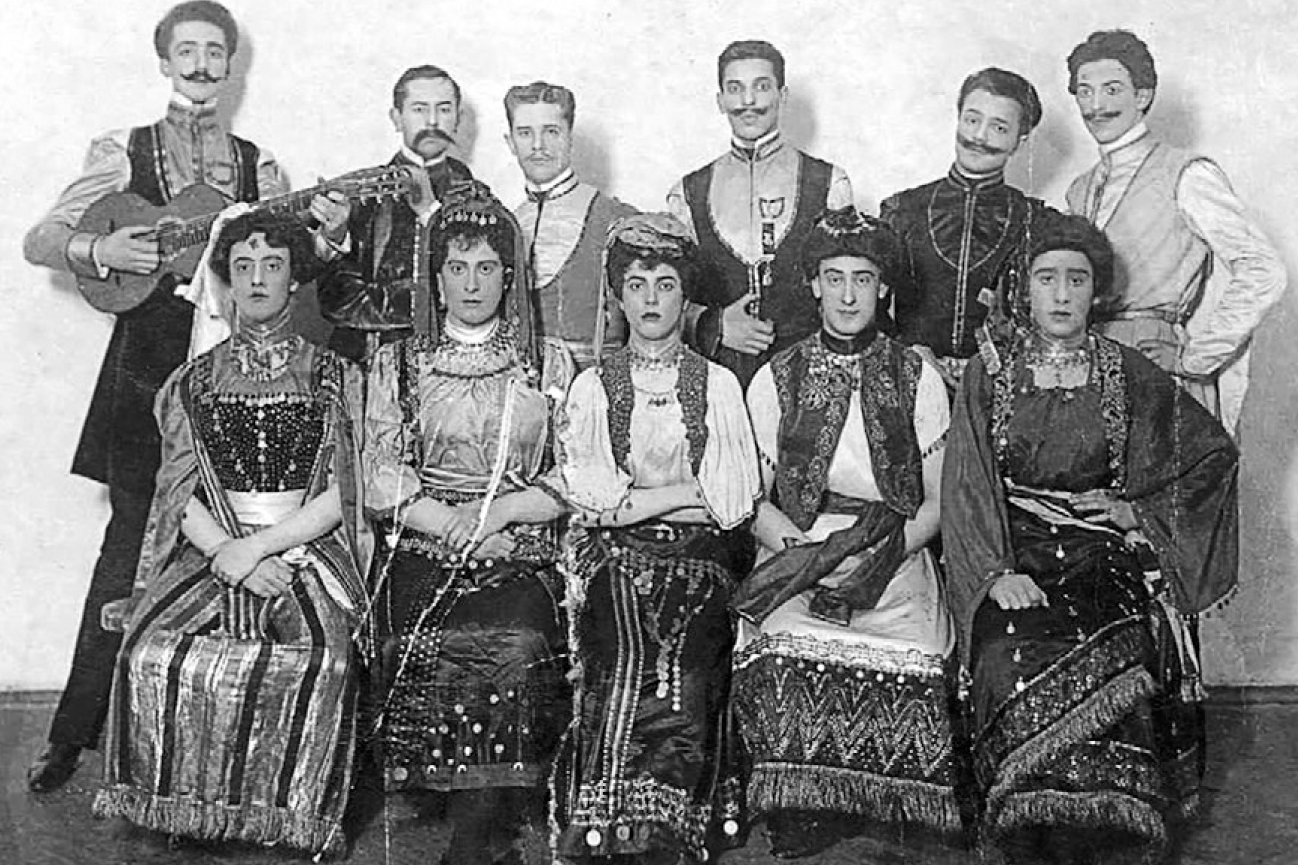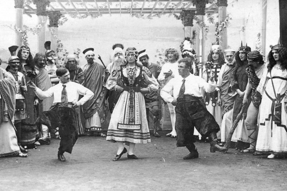 Старшекурсники Императорского училища правоведения в женских и мужских цыганских нарядах. Начало 1910-х. Из коллекции Ольги Хорошиловой