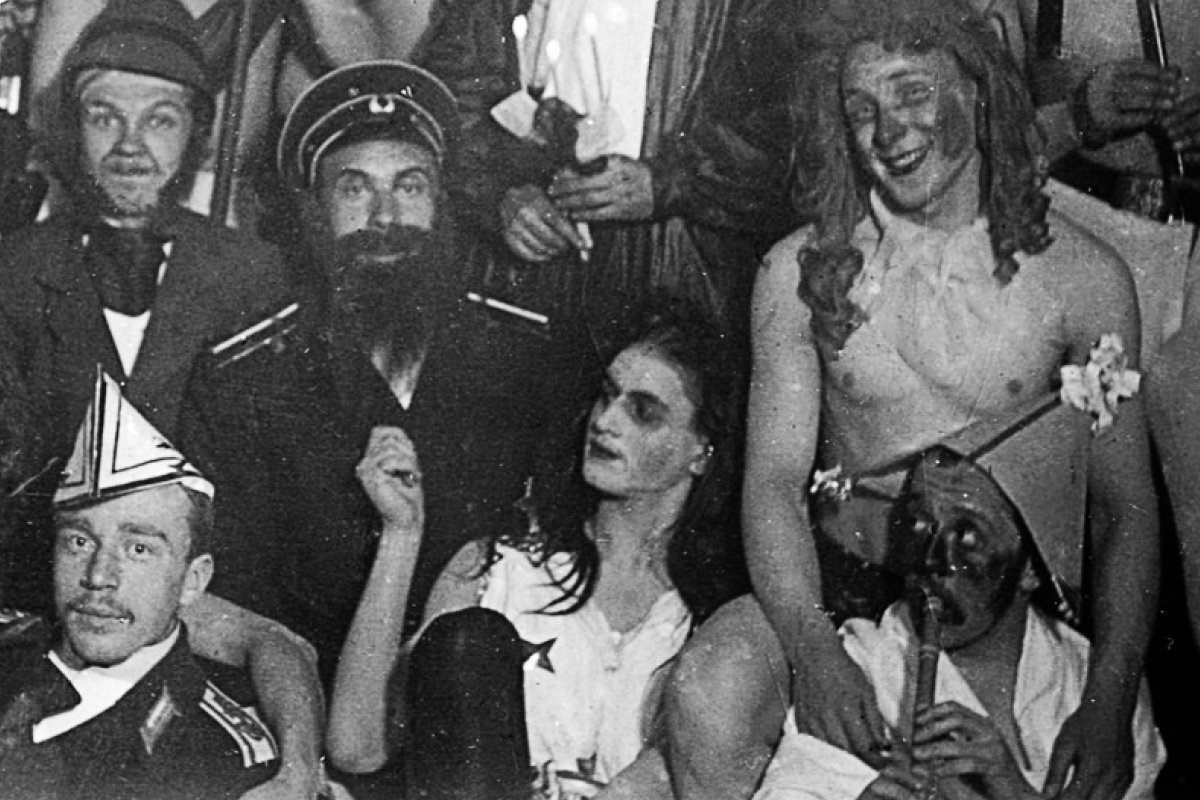 Участники инсценированной мужской свадьбы 15 января 1921 года на частной квартире по улице Симеоновской, дом 6. Фотография матроса Афанасия Шаура из архива ЦГА СПб