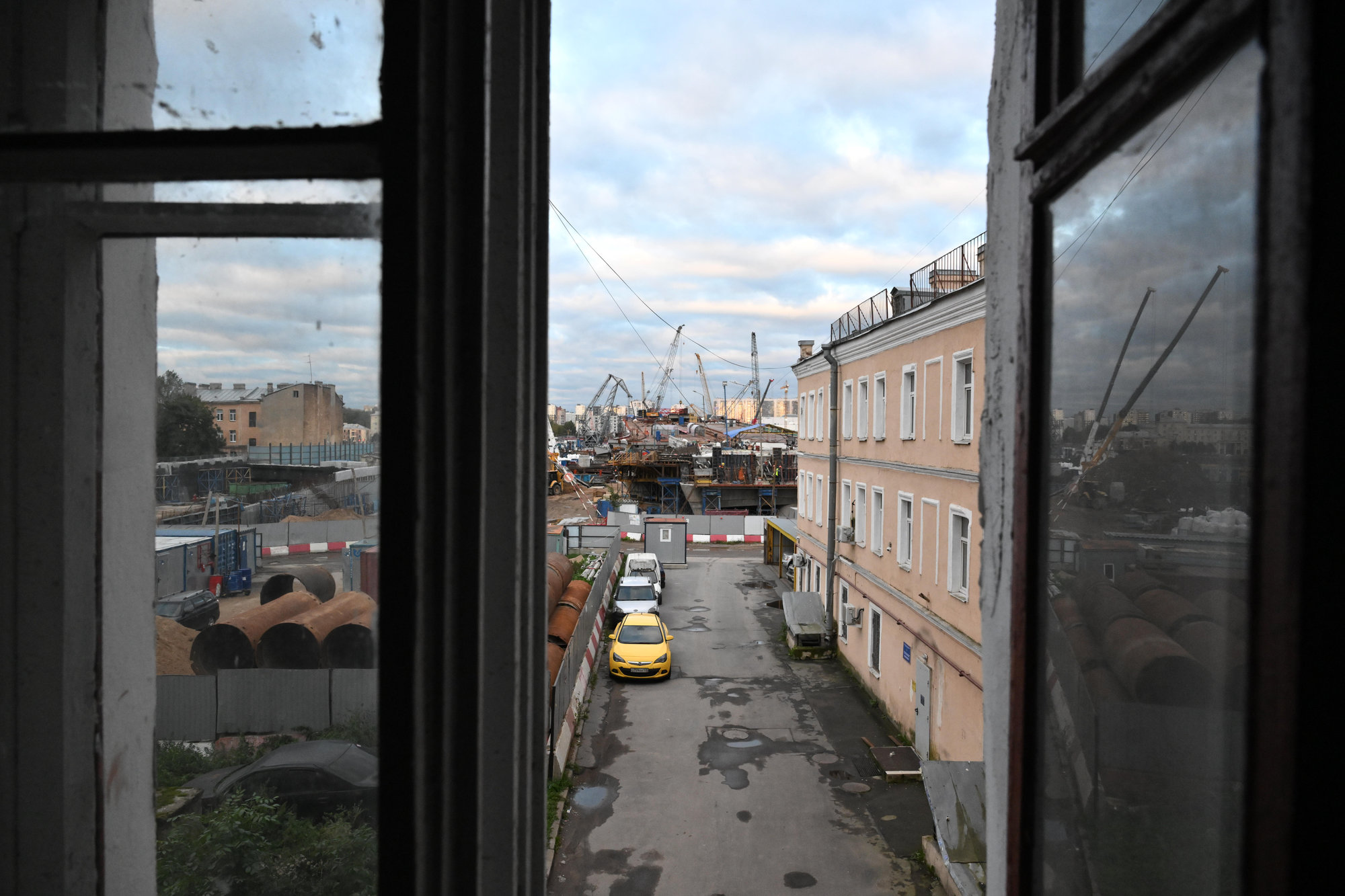 В этой сталинке 1949 года — ближайшем к стройплощадке доме, который не попадает под снос, — жильцы жалуются на неудобства и ухудшение состояния здания. Одна из жительниц рассказала, что до начала стройки в квартирах на верхних этажах мебель лишь немного «потряхивалась» — в основном, из-за движения трамваев. Сейчас, когда в 70 метрах от дома вбивают сваи и работает крупная строительная техника, в квартирах на пятом этаже, по ее словам, «всё трясется, стены трясутся».