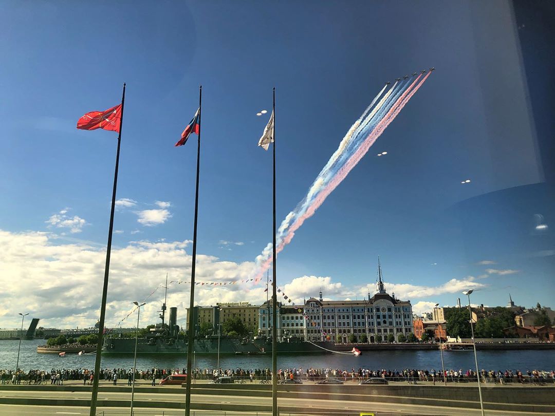 В Петербурге 26 июля прошел морской парад в честь Дня ВМФ. В нем приняли участие корабли, катеры и подводные лодки, в том числе «Полтава» — реплика военного корабля времен Петра I. «Бумага» показывает, как прошло мероприятие, за которым с набережных наблюдали сотни горожан.