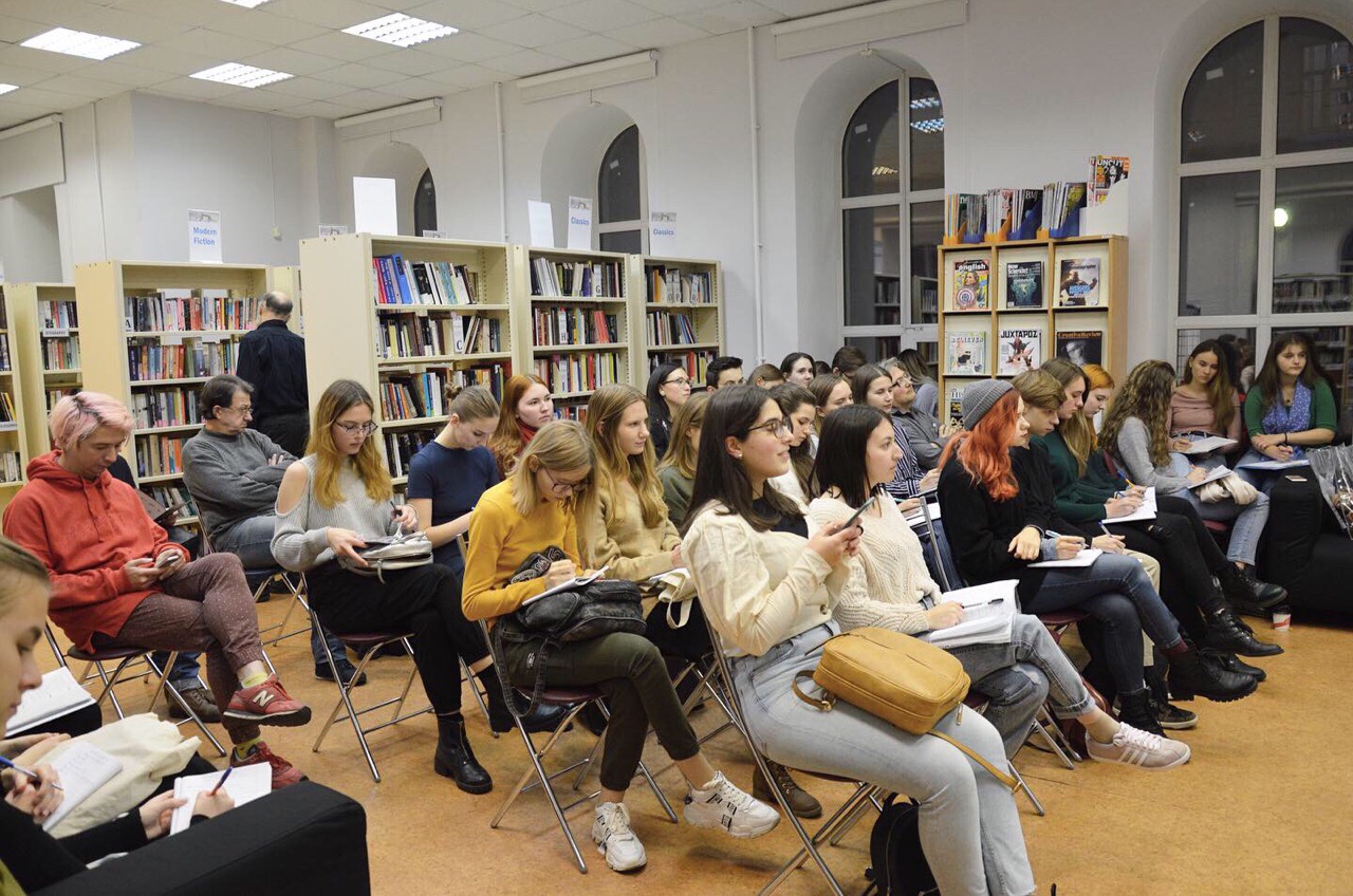 Каждую неделю в библиотеке имени Маяковского на Фонтанке участники разговорного клуба на английском языке обсуждают разные темы — от литературы до философии и путешествий. Ведет дискуссии англичанин Адэл Заптиа. Он впервые побывал в Петербурге в 2015 году и спустя два года решил переехать сюда жить и преподавать английский. По словам Адэла, он планирует организовывать и другие мероприятия для изучающих английский язык в Петербурге.