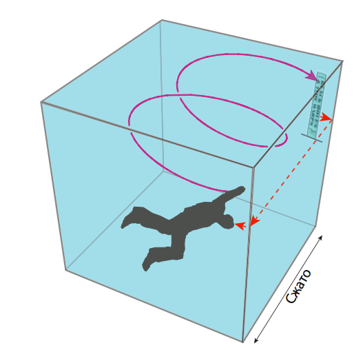 Купер снова и снова бьет кулаком по мировой трубке книги, порождая гравитационную силу, которая путешествует назад во времени, к тому моменту в спальне Мерф, который Купер видит перед собой, и именно в тот момент гравитация толкает мировую трубку. В результате мировая трубка сдвигается — Купер воспринимает это движение как мгновенный отклик на свои действия. Движение становится волной, которая распространяется влево и вниз по трубке (рис. 30.2). Когда это движение достигает достаточной силы, книга падает с полки.